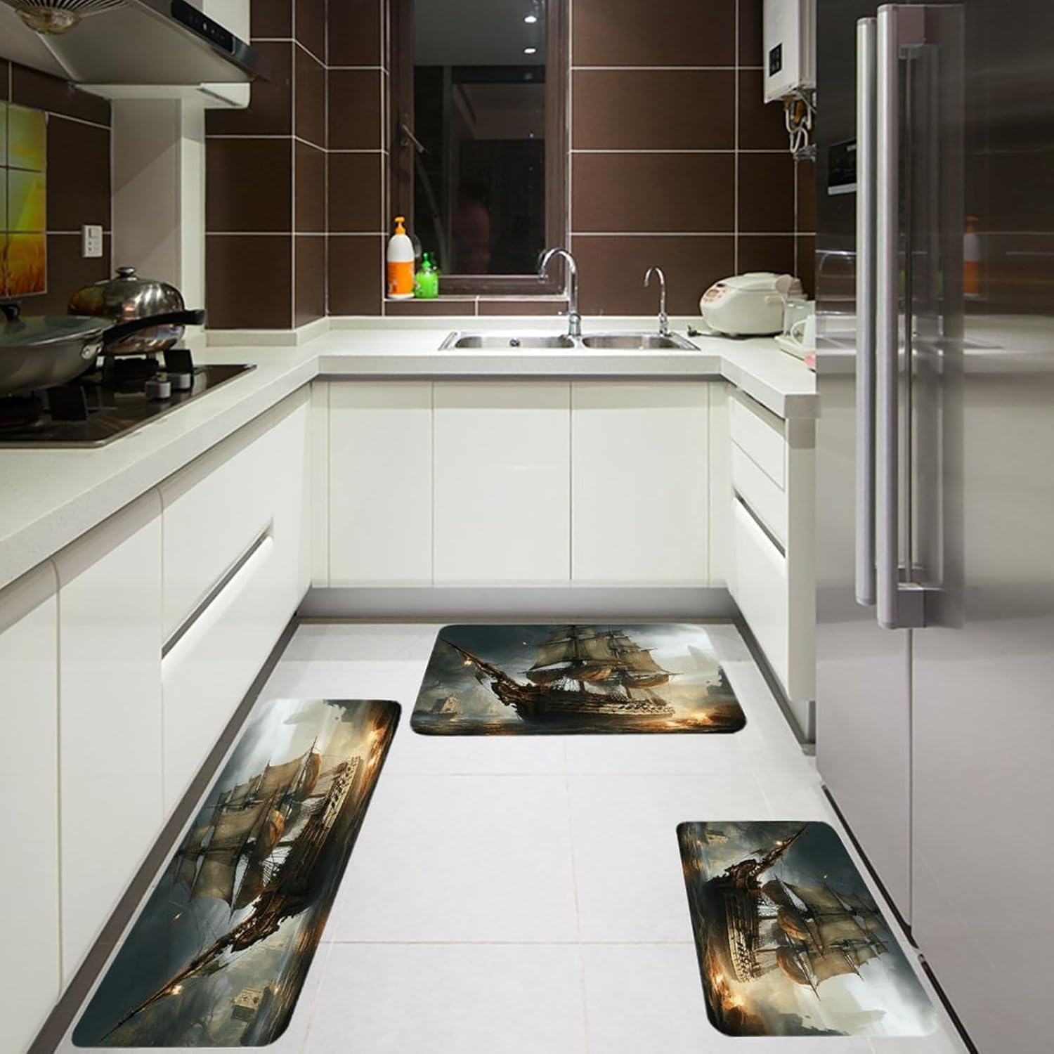 Introduce a new level of ease and visual harmony to your culinary space with this essential three-piece Cool Pirate Ship kitchen mat set.Designed specifically for use areas,these cushioned kitchen rugs provide a welcome layer of support right where you need it most–in front of the sink,stove,or prep counter.the fabric offers a plush,dense texture underfoot,making standing tasks noticeably more comfortable.The set functions perfectly as versatile kitchen area rug solutions,fitting seamlessly into your existing layout.The core of these anti fatigue Cool Pirate Ship kitchen rug sets lies in the selected velvet material.This fabric choice delivers both the sought-after softness and a practical thickness that gently cushions your feet,helping to alleviate the tiredness that comes with long cooking sessions.Beyond comfort,maintenance is refreshingly simple;they are washable kitchen mats designed to maintain their appearance through regular cleaning.Extend the utility and aesthetic charm beyond just the kitchen.The soft Cool Pirate Ship kitchen runner rugs design and quality construction make them adaptable companions for other areas like the bathroom vanity or even outdoor patio setups where a comfortable floor mat is desired.Arrange the three pieces to create a cohesive runner effect or use them individually as targeted floor mats where support is needed.This set effectively combines practical comfort,effortless care with its washable nature,and an attractive upgrade to your floor space,making it a smart addition to any home.
