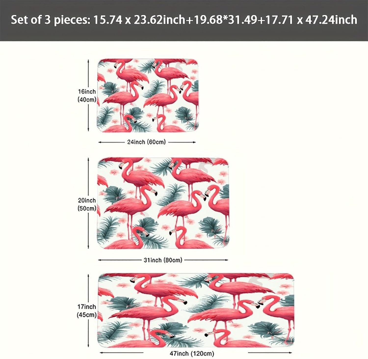 Introduce a new level of ease and visual harmony to your culinary space with this essential three-piece Pink Flamingo Pattern kitchen mat set.Designed specifically for use areas,these cushioned kitchen rugs provide a welcome layer of support right where you need it most–in front of the sink,stove,or prep counter.the fabric offers a plush,dense texture underfoot,making standing tasks noticeably more comfortable.The set functions perfectly as versatile kitchen area rug solutions,fitting seamlessly into your existing layout.The core of these anti fatigue Pink Flamingo Pattern kitchen rug sets lies in the selected velvet material.This fabric choice delivers both the sought-after softness and a practical thickness that gently cushions your feet,helping to alleviate the tiredness that comes with long cooking sessions.Beyond comfort,maintenance is refreshingly simple;they are washable kitchen mats designed to maintain their appearance through regular cleaning.Extend the utility and aesthetic charm beyond just the kitchen.The soft Pink Flamingo Pattern kitchen runner rugs design and quality construction make them adaptable companions for other areas like the bathroom vanity or even outdoor patio setups where a comfortable floor mat is desired.Arrange the three pieces to create a cohesive runner effect or use them individually as targeted floor mats where support is needed.This set effectively combines practical comfort,effortless care with its washable nature,and an attractive upgrade to your floor space,making it a smart addition to any home.