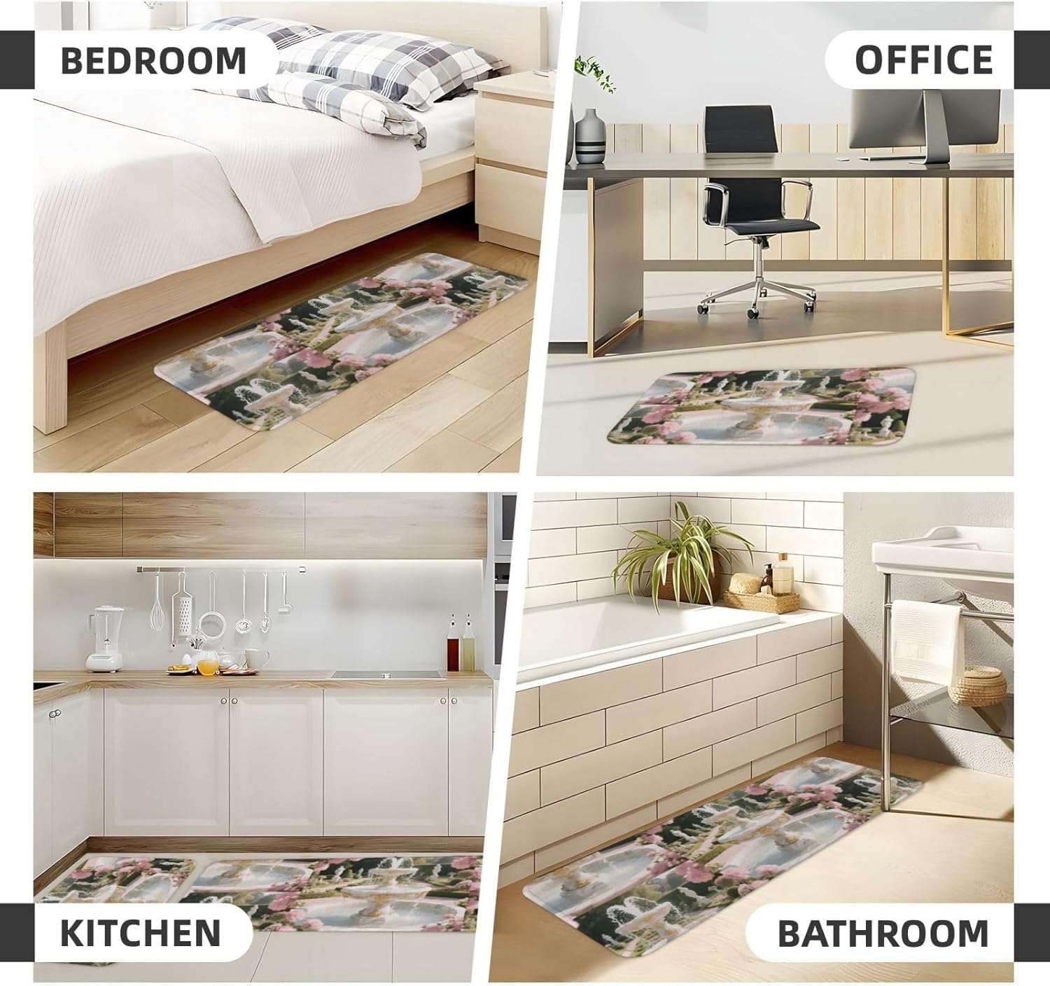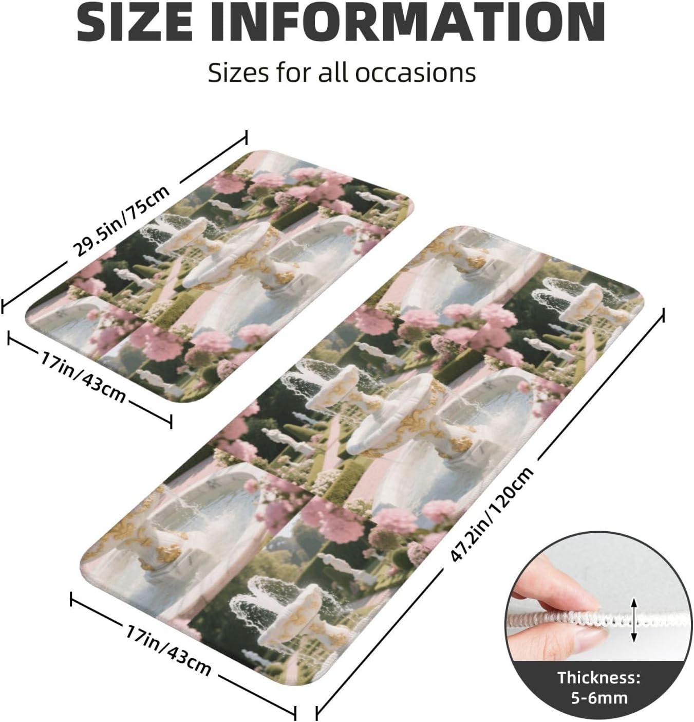 Kitchen Rugs and Mats, Anti Fatigue Comfort Standing Kitchen Runner Mat Rococo Fountain Kitchen Floor Mat 2 Sets Boho Kitchen Rug for Kitchen Decor Floor Mat Runner Carpet for Hallways Farmhouse Kitchen Mat, Cushioned Anti Fatigue Kitchen Mats for Floor, Non Slip Rugs for Kitchen Floor, Rococo Fountain Kitchen Mat Anti Fatigue Cushioned, Memory Foam Padded Standing Rug Washable, Non Slip Comfort Floor Runner for Home, Sink, Laundry, Office Cushioned Kitchen Mats for FloorSize: The set contains 2 rectangular mats (17.3"*29.5"+17.3"*47.2").Durable and non-slip: It's made of PVC material, the grain backing prevent slipping or shifting.Decent design: The simplicity pattern and color make your kitchen more stylish.Multi-purpose: Suitable for laundry, doorway, outdoor, kitchen, foyer, bathroom, etc.Easy to clean: Waterproof material make this anti fatigue mat easy to clean, just wipe it with wet cloth.Stylist Multi-functional Floral Anti Fatigue Kitchen Mats Set: These 2-piece farmhouse kitchen rug set includes a kitchen runner + rectangle kitchen carpet, fitting most kitchen spaces, also suitable as standing desk mat, laundry room rug and runner,office mat,doormat, bedroom rug ,bathroom rug mat, bedroom accent or other anti fatigue mat application, provides a warm accent for the home or kitchen.Also be great gift idea for Thanksgiving,Christmas or any other holiday!