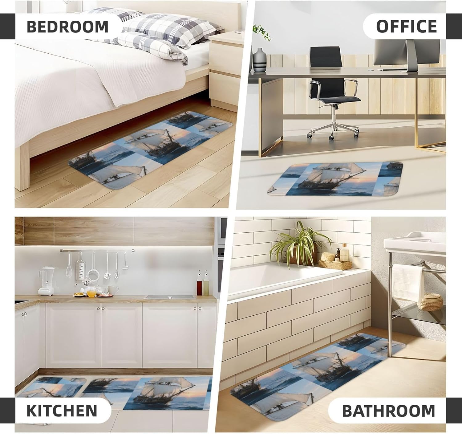 Kitchen Rugs and Mats, Anti Fatigue Comfort Standing Kitchen Runner Mat Sailing Ship Kitchen Floor Mat 2 Sets Boho Kitchen Rug for Kitchen Decor Floor Mat Runner Carpet for Hallways Farmhouse Kitchen Mat, Cushioned Anti Fatigue Kitchen Mats for Floor, Non Slip Rugs for Kitchen Floor, Sailing Ship Kitchen Mat Anti Fatigue Cushioned, Memory Foam Padded Standing Rug Washable, Non Slip Comfort Floor Runner for Home, Sink, Laundry, Office Cushioned Kitchen Mats for FloorSize: The set contains 2 rectangular mats (17.3"*29.5"+17.3"*47.2").Durable and non-slip: It's made of PVC material, the grain backing prevent slipping or shifting.Decent design: The simplicity pattern and color make your kitchen more stylish.Multi-purpose: Suitable for laundry, doorway, outdoor, kitchen, foyer, bathroom, etc.Easy to clean: Waterproof material make this anti fatigue mat easy to clean, just wipe it with wet cloth.Stylist Multi-functional Floral Anti Fatigue Kitchen Mats Set: These 2-piece farmhouse kitchen rug set includes a kitchen runner + rectangle kitchen carpet, fitting most kitchen spaces, also suitable as standing desk mat, laundry room rug and runner,office mat,doormat, bedroom rug ,bathroom rug mat, bedroom accent or other anti fatigue mat application, provides a warm accent for the home or kitchen.Also be great gift idea for Thanksgiving,Christmas or any other holiday!