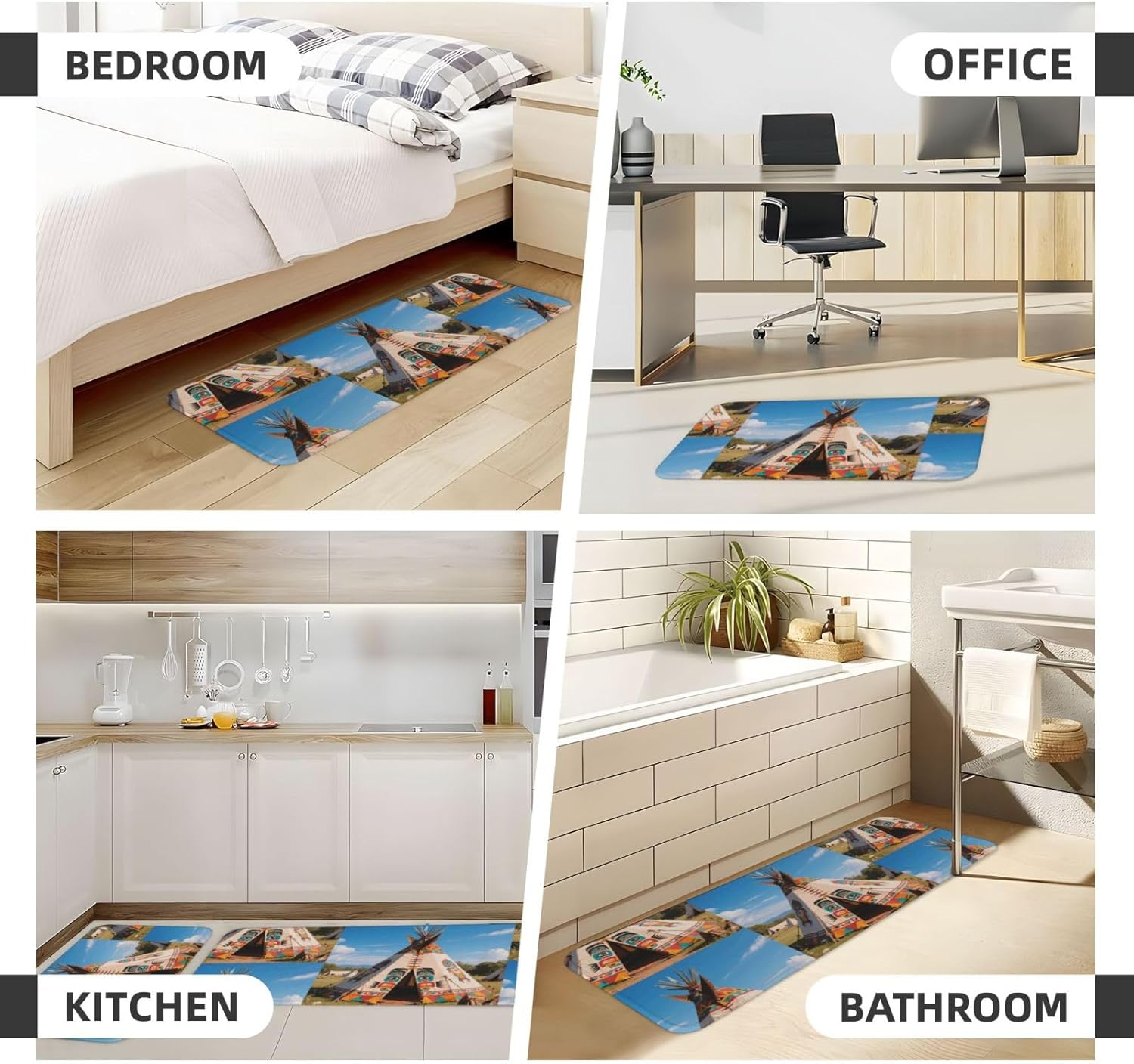 Kitchen Rugs and Mats, Anti Fatigue Comfort Standing Kitchen Runner Mat Indian Tent Kitchen Floor Mat 2 Sets Boho Kitchen Rug for Kitchen Decor Floor Mat Runner Carpet for Hallways Farmhouse Kitchen Mat, Cushioned Anti Fatigue Kitchen Mats for Floor, Non Slip Rugs for Kitchen Floor, Indian Tent Kitchen Mat Anti Fatigue Cushioned, Memory Foam Padded Standing Rug Washable, Non Slip Comfort Floor Runner for Home, Sink, Laundry, Office Cushioned Kitchen Mats for FloorSize: The set contains 2 rectangular mats (17.3"*29.5"+17.3"*47.2").Durable and non-slip: It's made of PVC material, the grain backing prevent slipping or shifting.Decent design: The simplicity pattern and color make your kitchen more stylish.Multi-purpose: Suitable for laundry, doorway, outdoor, kitchen, foyer, bathroom, etc.Easy to clean: Waterproof material make this anti fatigue mat easy to clean, just wipe it with wet cloth.Stylist Multi-functional Floral Anti Fatigue Kitchen Mats Set: These 2-piece farmhouse kitchen rug set includes a kitchen runner + rectangle kitchen carpet, fitting most kitchen spaces, also suitable as standing desk mat, laundry room rug and runner,office mat,doormat, bedroom rug ,bathroom rug mat, bedroom accent or other anti fatigue mat application, provides a warm accent for the home or kitchen.Also be great gift idea for Thanksgiving,Christmas or any other holiday!