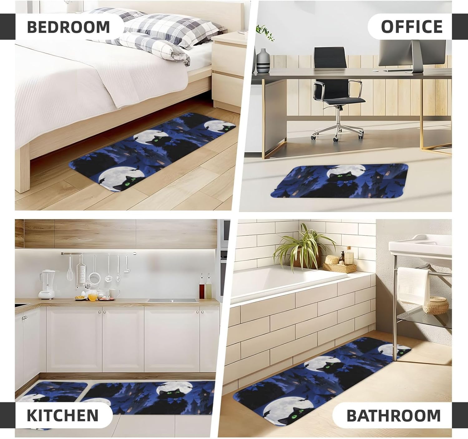 Kitchen Rugs and Mats, Anti Fatigue Comfort Standing Kitchen Runner Mat Halloween Black Cat Kitchen Floor Mat 2 Sets Boho Kitchen Rug for Kitchen Decor Floor Mat Runner Carpet for Hallways Farmhouse Kitchen Mat, Cushioned Anti Fatigue Kitchen Mats for Floor, Non Slip Rugs for Kitchen Floor, Halloween Black Cat Kitchen Mat Anti Fatigue Cushioned, Memory Foam Padded Standing Rug Washable, Non Slip Comfort Floor Runner for Home, Sink, Laundry, Office Cushioned Kitchen Mats for FloorSize: The set contains 2 rectangular mats (17.3"*29.5"+17.3"*47.2").Durable and non-slip: It's made of PVC material, the grain backing prevent slipping or shifting.Decent design: The simplicity pattern and color make your kitchen more stylish.Multi-purpose: Suitable for laundry, doorway, outdoor, kitchen, foyer, bathroom, etc.Easy to clean: Waterproof material make this anti fatigue mat easy to clean, just wipe it with wet cloth.Stylist Multi-functional Floral Anti Fatigue Kitchen Mats Set: These 2-piece farmhouse kitchen rug set includes a kitchen runner + rectangle kitchen carpet, fitting most kitchen spaces, also suitable as standing desk mat, laundry room rug and runner,office mat,doormat, bedroom rug ,bathroom rug mat, bedroom accent or other anti fatigue mat application, provides a warm accent for the home or kitchen.Also be great gift idea for Thanksgiving,Christmas or any other holiday!