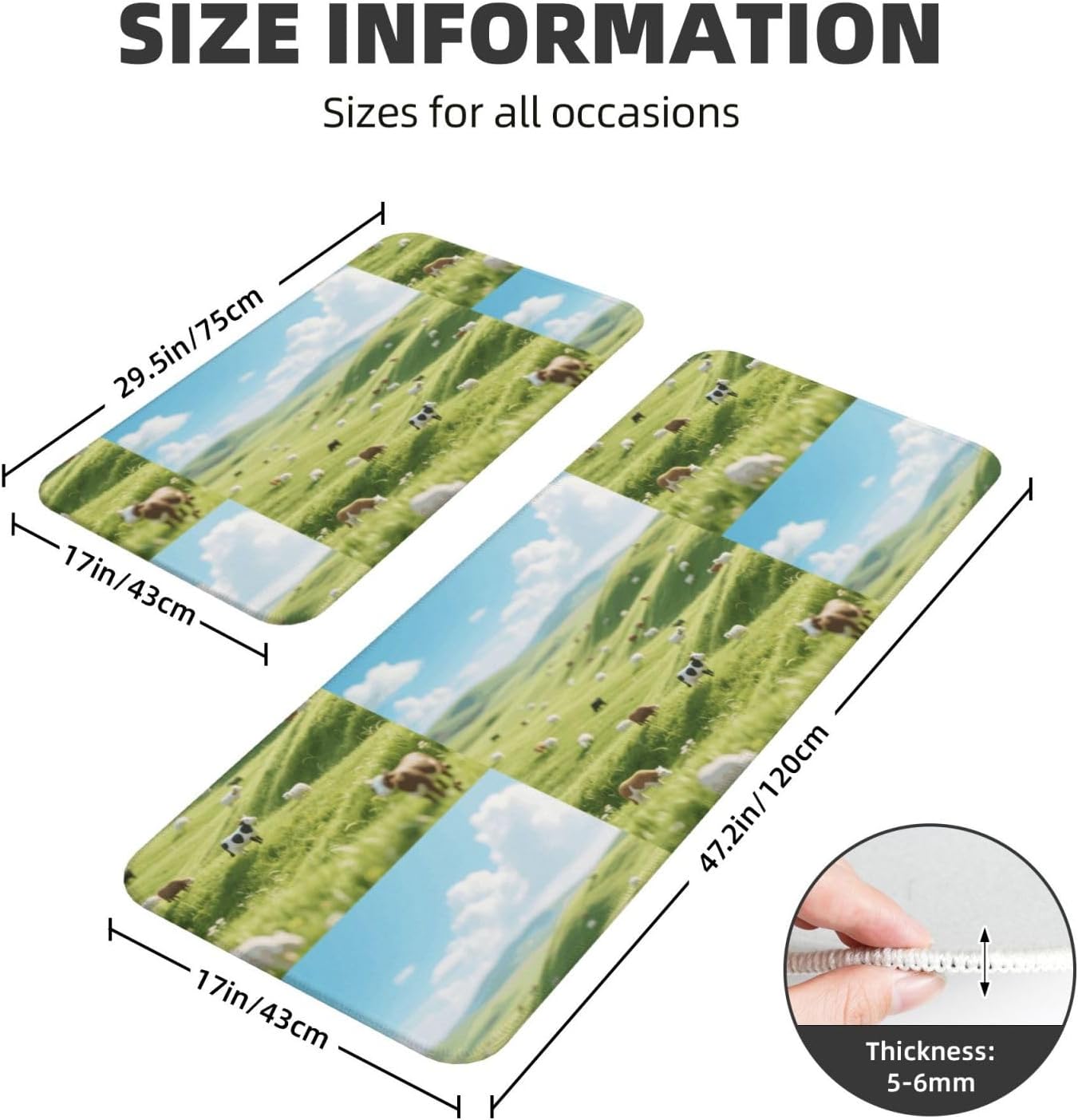 Kitchen Rugs and Mats, Anti Fatigue Comfort Standing Kitchen Runner Mat Vast Prairie Kitchen Floor Mat 2 Sets Boho Kitchen Rug for Kitchen Decor Floor Mat Runner Carpet for Hallways Farmhouse Kitchen Mat, Cushioned Anti Fatigue Kitchen Mats for Floor, Non Slip Rugs for Kitchen Floor, Vast Prairie Kitchen Mat Anti Fatigue Cushioned, Memory Foam Padded Standing Rug Washable, Non Slip Comfort Floor Runner for Home, Sink, Laundry, Office Cushioned Kitchen Mats for FloorSize: The set contains 2 rectangular mats (17.3"*29.5"+17.3"*47.2").Durable and non-slip: It's made of PVC material, the grain backing prevent slipping or shifting.Decent design: The simplicity pattern and color make your kitchen more stylish.Multi-purpose: Suitable for laundry, doorway, outdoor, kitchen, foyer, bathroom, etc.Easy to clean: Waterproof material make this anti fatigue mat easy to clean, just wipe it with wet cloth.Stylist Multi-functional Floral Anti Fatigue Kitchen Mats Set: These 2-piece farmhouse kitchen rug set includes a kitchen runner + rectangle kitchen carpet, fitting most kitchen spaces, also suitable as standing desk mat, laundry room rug and runner,office mat,doormat, bedroom rug ,bathroom rug mat, bedroom accent or other anti fatigue mat application, provides a warm accent for the home or kitchen.Also be great gift idea for Thanksgiving,Christmas or any other holiday!