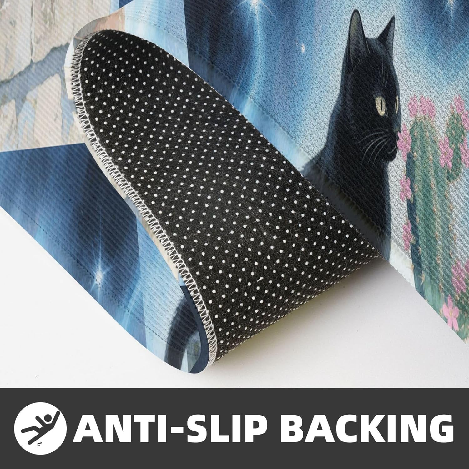 Kitchen Rugs and Mats, Anti Fatigue Comfort Standing Kitchen Runner Mat Black Cat Cactus Kitchen Floor Mat 2 Sets Boho Kitchen Rug for Kitchen Decor Floor Mat Runner Carpet for Hallways Farmhouse Kitchen Mat, Cushioned Anti Fatigue Kitchen Mats for Floor, Non Slip Rugs for Kitchen Floor, Black Cat Cactus Kitchen Mat Anti Fatigue Cushioned, Memory Foam Padded Standing Rug Washable, Non Slip Comfort Floor Runner for Home, Sink, Laundry, Office Cushioned Kitchen Mats for FloorSize: The set contains 2 rectangular mats (17.3"*29.5"+17.3"*47.2").Durable and non-slip: It's made of PVC material, the grain backing prevent slipping or shifting.Decent design: The simplicity pattern and color make your kitchen more stylish.Multi-purpose: Suitable for laundry, doorway, outdoor, kitchen, foyer, bathroom, etc.Easy to clean: Waterproof material make this anti fatigue mat easy to clean, just wipe it with wet cloth.Stylist Multi-functional Floral Anti Fatigue Kitchen Mats Set: These 2-piece farmhouse kitchen rug set includes a kitchen runner + rectangle kitchen carpet, fitting most kitchen spaces, also suitable as standing desk mat, laundry room rug and runner,office mat,doormat, bedroom rug ,bathroom rug mat, bedroom accent or other anti fatigue mat application, provides a warm accent for the home or kitchen.Also be great gift idea for Thanksgiving,Christmas or any other holiday!