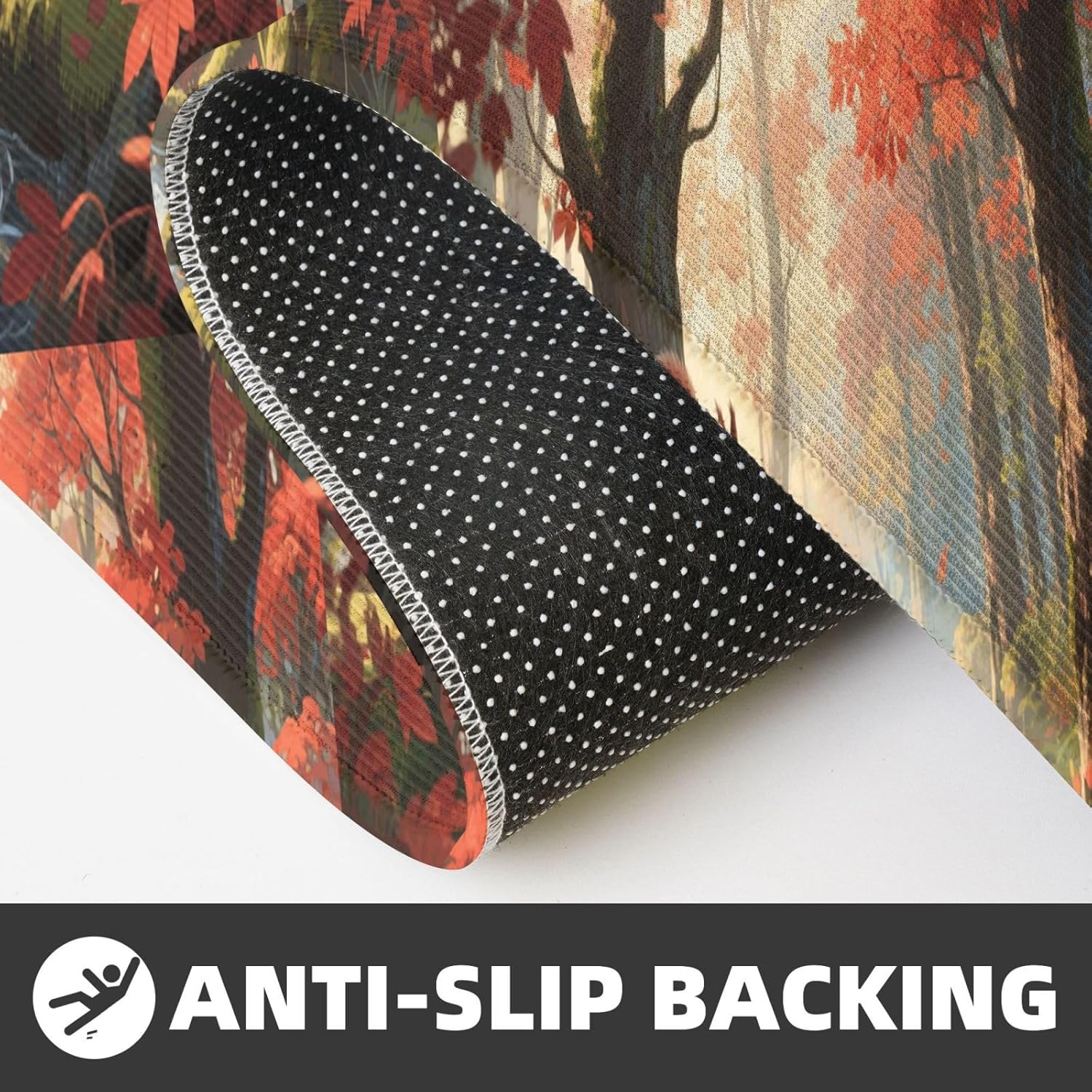 Kitchen Rugs and Mats, Anti Fatigue Comfort Standing Kitchen Runner Mat Red - Leaf Forest Creek Kitchen Floor Mat 2 Sets Boho Kitchen Rug for Kitchen Decor Floor Mat Runner Carpet for Hallways Farmhouse Kitchen Mat, Cushioned Anti Fatigue Kitchen Mats for Floor, Non Slip Rugs for Kitchen Floor, Red - Leaf Forest Creek Kitchen Mat Anti Fatigue Cushioned, Memory Foam Padded Standing Rug Washable, Non Slip Comfort Floor Runner for Home, Sink, Laundry, Office Cushioned Kitchen Mats for FloorSize: The set contains 2 rectangular mats (17.3"*29.5"+17.3"*47.2").Durable and non-slip: It's made of PVC material, the grain backing prevent slipping or shifting.Decent design: The simplicity pattern and color make your kitchen more stylish.Multi-purpose: Suitable for laundry, doorway, outdoor, kitchen, foyer, bathroom, etc.Easy to clean: Waterproof material make this anti fatigue mat easy to clean, just wipe it with wet cloth.Stylist Multi-functional Floral Anti Fatigue Kitchen Mats Set: These 2-piece farmhouse kitchen rug set includes a kitchen runner + rectangle kitchen carpet, fitting most kitchen spaces, also suitable as standing desk mat, laundry room rug and runner,office mat,doormat, bedroom rug ,bathroom rug mat, bedroom accent or other anti fatigue mat application, provides a warm accent for the home or kitchen.Also be great gift idea for Thanksgiving,Christmas or any other holiday!