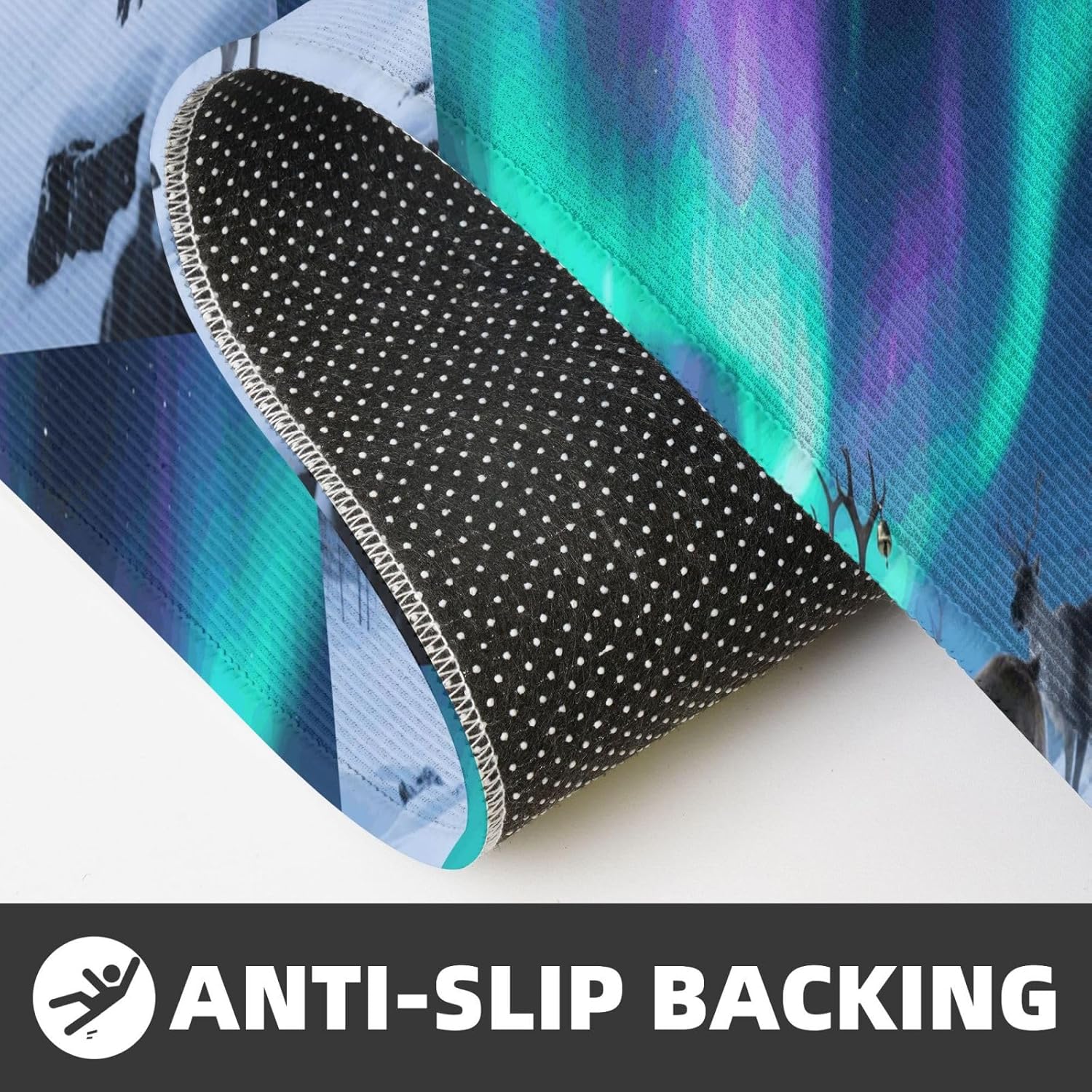 Kitchen Rugs and Mats, Anti Fatigue Comfort Standing Kitchen Runner Mat Reindeer under Aurora Kitchen Floor Mat 2 Sets Boho Kitchen Rug for Kitchen Decor Floor Mat Runner Carpet for Hallways Farmhouse Kitchen Mat, Cushioned Anti Fatigue Kitchen Mats for Floor, Non Slip Rugs for Kitchen Floor, Reindeer under Aurora Kitchen Mat Anti Fatigue Cushioned, Memory Foam Padded Standing Rug Washable, Non Slip Comfort Floor Runner for Home, Sink, Laundry, Office Cushioned Kitchen Mats for FloorSize: The set contains 2 rectangular mats (17.3"*29.5"+17.3"*47.2").Durable and non-slip: It's made of PVC material, the grain backing prevent slipping or shifting.Decent design: The simplicity pattern and color make your kitchen more stylish.Multi-purpose: Suitable for laundry, doorway, outdoor, kitchen, foyer, bathroom, etc.Easy to clean: Waterproof material make this anti fatigue mat easy to clean, just wipe it with wet cloth.Stylist Multi-functional Floral Anti Fatigue Kitchen Mats Set: These 2-piece farmhouse kitchen rug set includes a kitchen runner + rectangle kitchen carpet, fitting most kitchen spaces, also suitable as standing desk mat, laundry room rug and runner,office mat,doormat, bedroom rug ,bathroom rug mat, bedroom accent or other anti fatigue mat application, provides a warm accent for the home or kitchen.Also be great gift idea for Thanksgiving,Christmas or any other holiday!