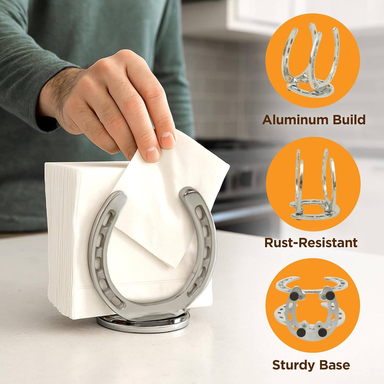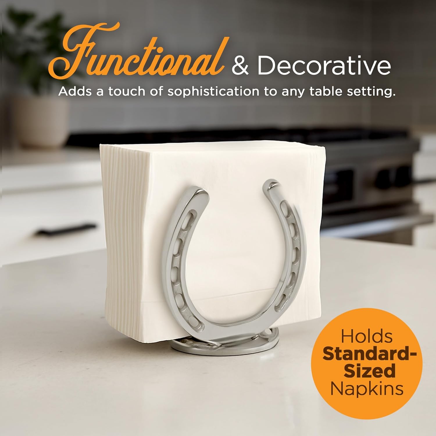 Add a touch of equestrian elegance to your dining space with the Huntley Horse Shoe Napkin Holder. Crafted from durable aluminum with a sleek silver finish, this stylish holder features a classic horseshoe design, symbolizing luck and sophistication. Perfect for holding standard-sized napkins, it is both functional and decorative—ideal for horse lovers, ranch-style décor, or equestrian-themed events. Whether placed on a dining table, kitchen counter, or outdoor picnic setting, the Huntley Horse Shoe Napkin Holder brings charm and practicality to any occasion.