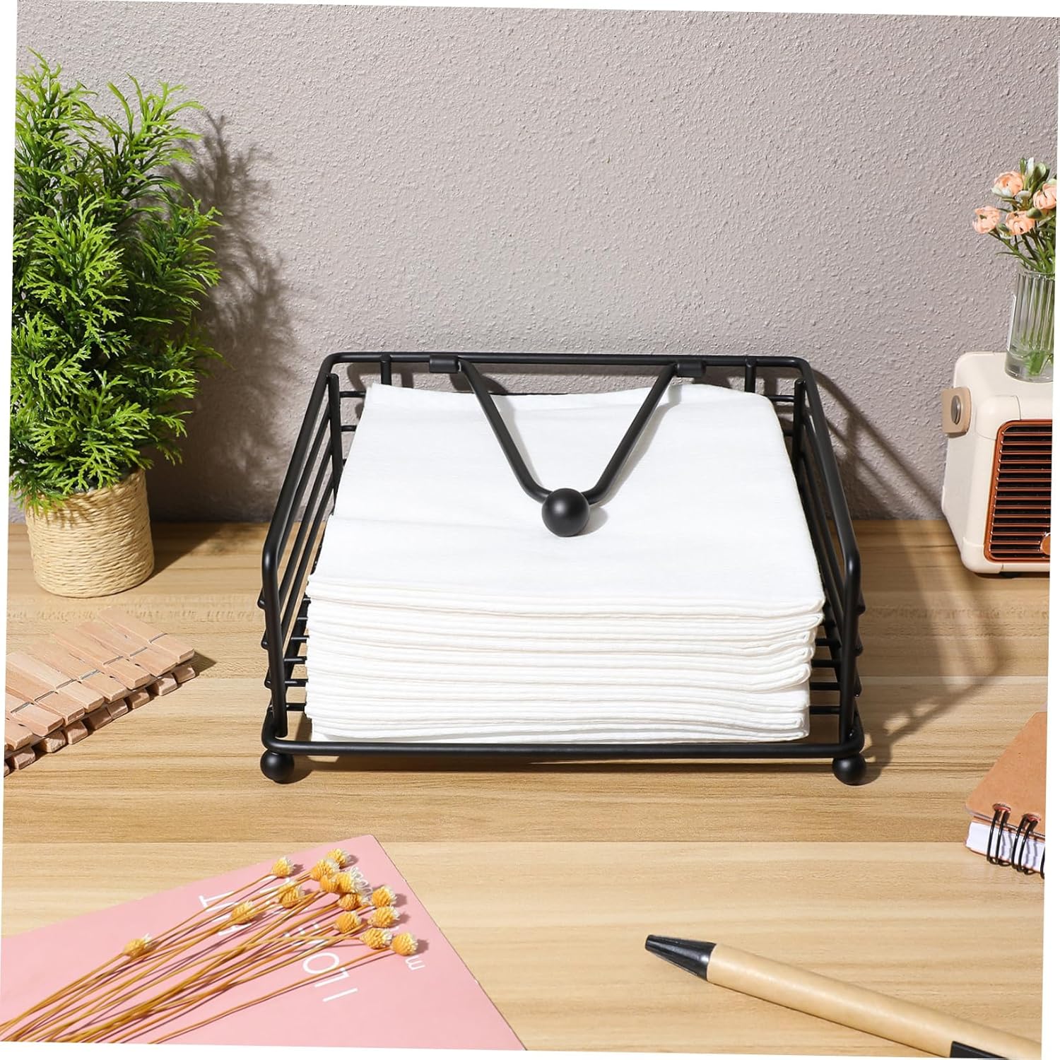 Package List 3 x napkin holder Characteristics - Easy to use: The napkin holder for kitchen is easy to use and allows for easy replacement of paper towels, saving time and effort Napkin Holder Black. - Large capacity: The napkin dispenser can hold multiple rolls of paper towels, reducing frequent refill, making it convenient for daily use Napkin Holder For Bathroom. - Metal material: The napkin holder for table is made of strong iron material, resistant to wear and deform, and long-lasting Kitchen Decor. -Size: 18.00X17.60X6.80cm/7.07X6.92X2.67in Flat Napkin Holder - Square shape: The square shape of the napkin holder is simple and elegant, adding of style to your kitchen or dining room Napkin Dispenser. -Material:Iron Farmhouse Napkin Holder -Color:Black Bathroom Napkin Holder - Multi-purpose: The napkin holder can be used in various settings, such as restaurants, kitchens, and bathrooms, making it a versatile accessory Square Napkin Holder.Goods InformationTable Napkin Holder Introducing our sleek and stylish metal napkin holder, suitable for any kitchen or dining room! With its square shape and large capacity, you can easily store multiple napkins for convenient use.Napkin Holder Flat The easy-to-use dispenser allows for quick and effortless napkin changes