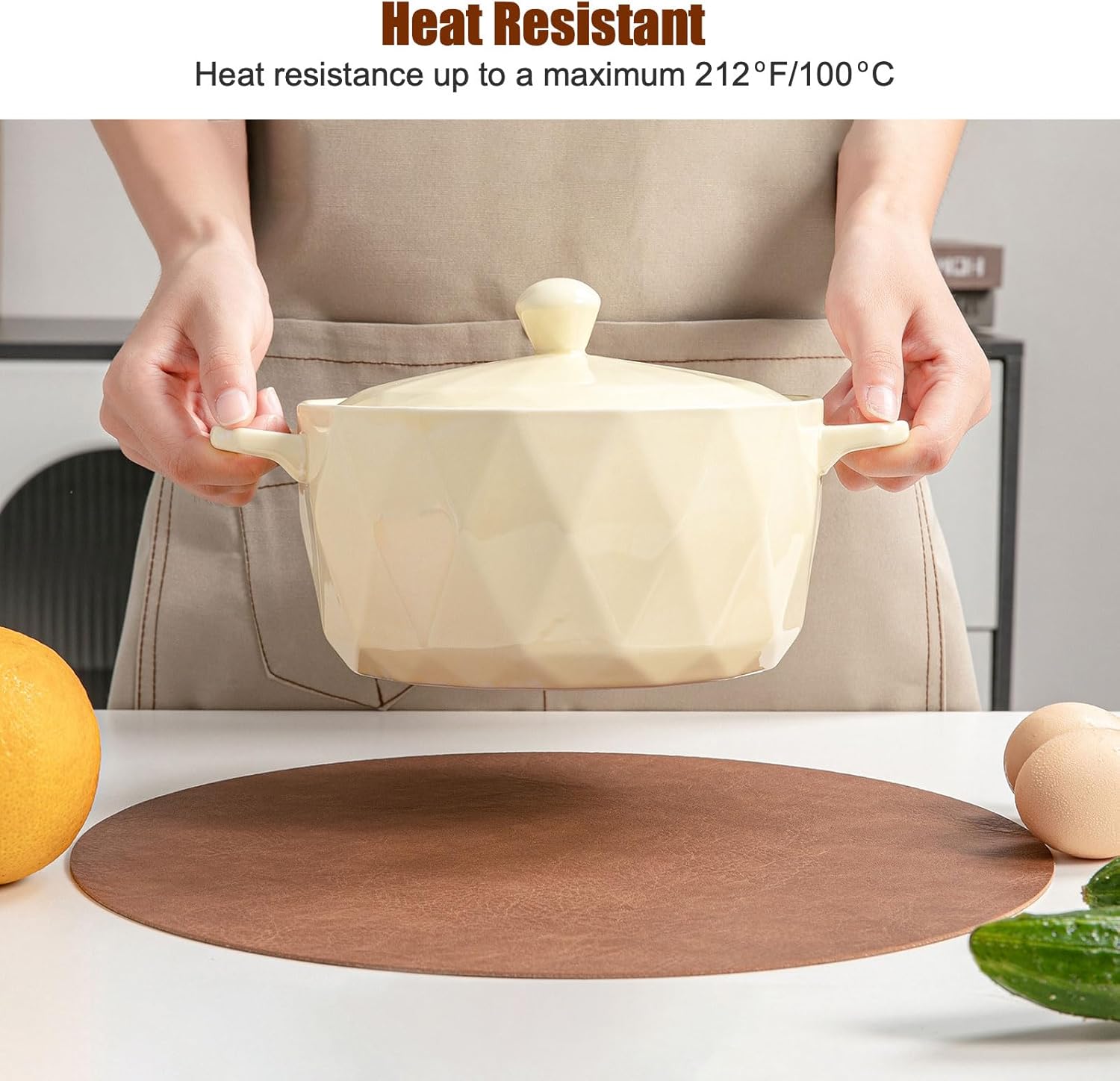 PU Leather Placemats Set of 6,15 Inches Round placemats, Napkin Holder for Table, Metal and Wood Napkin Holder, Standing Napkin Holders for Paper Napkins