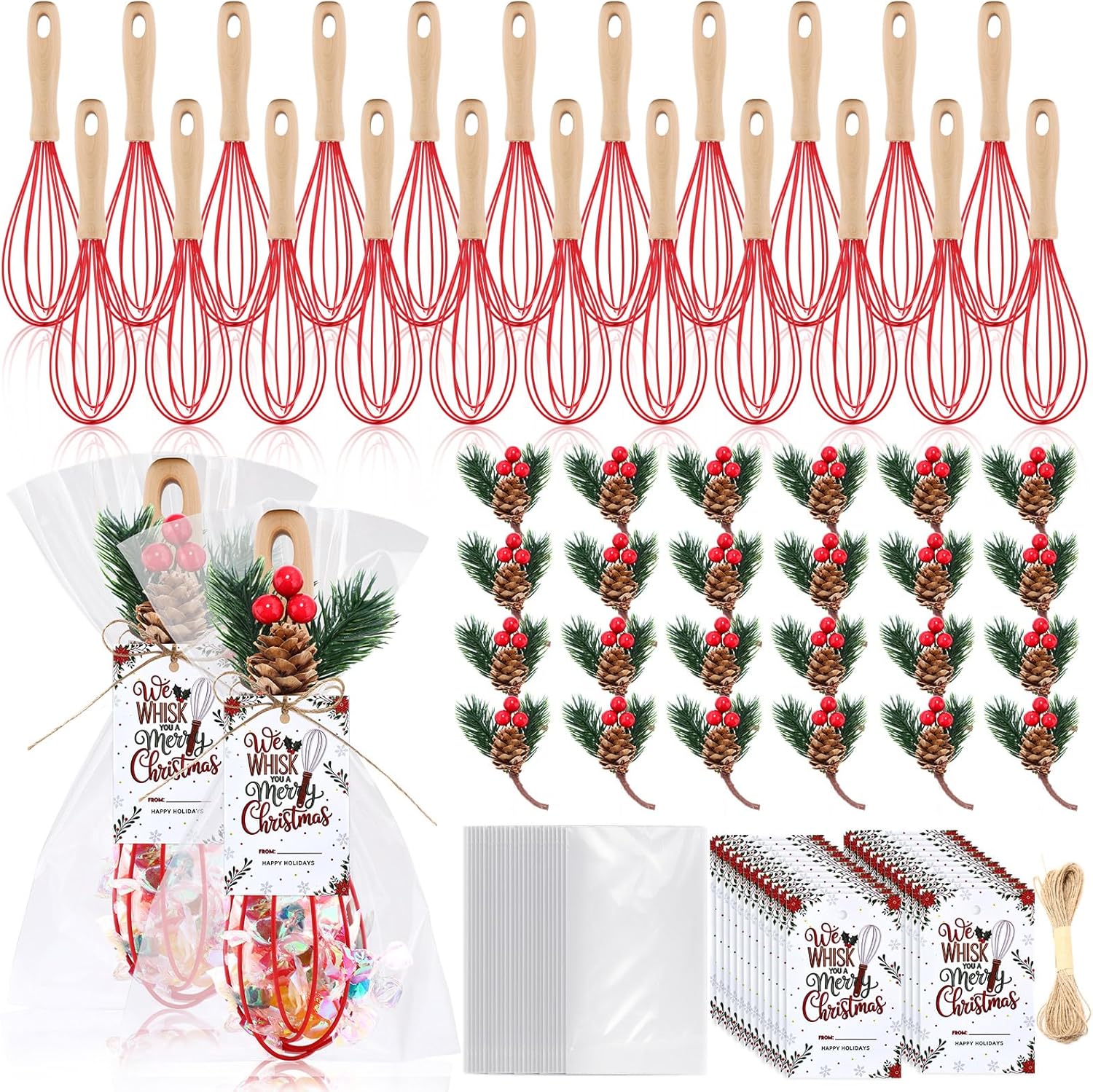Features: This Christmas whisk sets lets you enjoy the fun of DIY, and you can pair it with homemade cookies, snacks, and more. The recipient will surely feel the warmth and thoughtfulness you put into preparing the gift. These wire egg beaters can be given as presents or applied as decorations to adorn your Christmas tree or tabletop, creating a strong holiday ambiance and allowing everyone to experience the joy of the season. Specifications: Material: silicone, wooden, stainless steel Color: main red and green Size: Christmas whisks: about 10 inches long Christmas greeting card: about 1.97 x 3.15 inches/ 5 x 8 cm Clear plastic bag: about 9.84 x 5.91 inches/ 25 x 15 cm Ropes: about 32.81 ft/ 10 M Package includes: 48 x Christmas whisks 48 x Christmas greeting card 48 x Clear plastic bag 48 x Pine needles 1 x Rope Notes: Manual measurement, please allow slight errors on size. The color may exist a slight difference due to different screen displays.