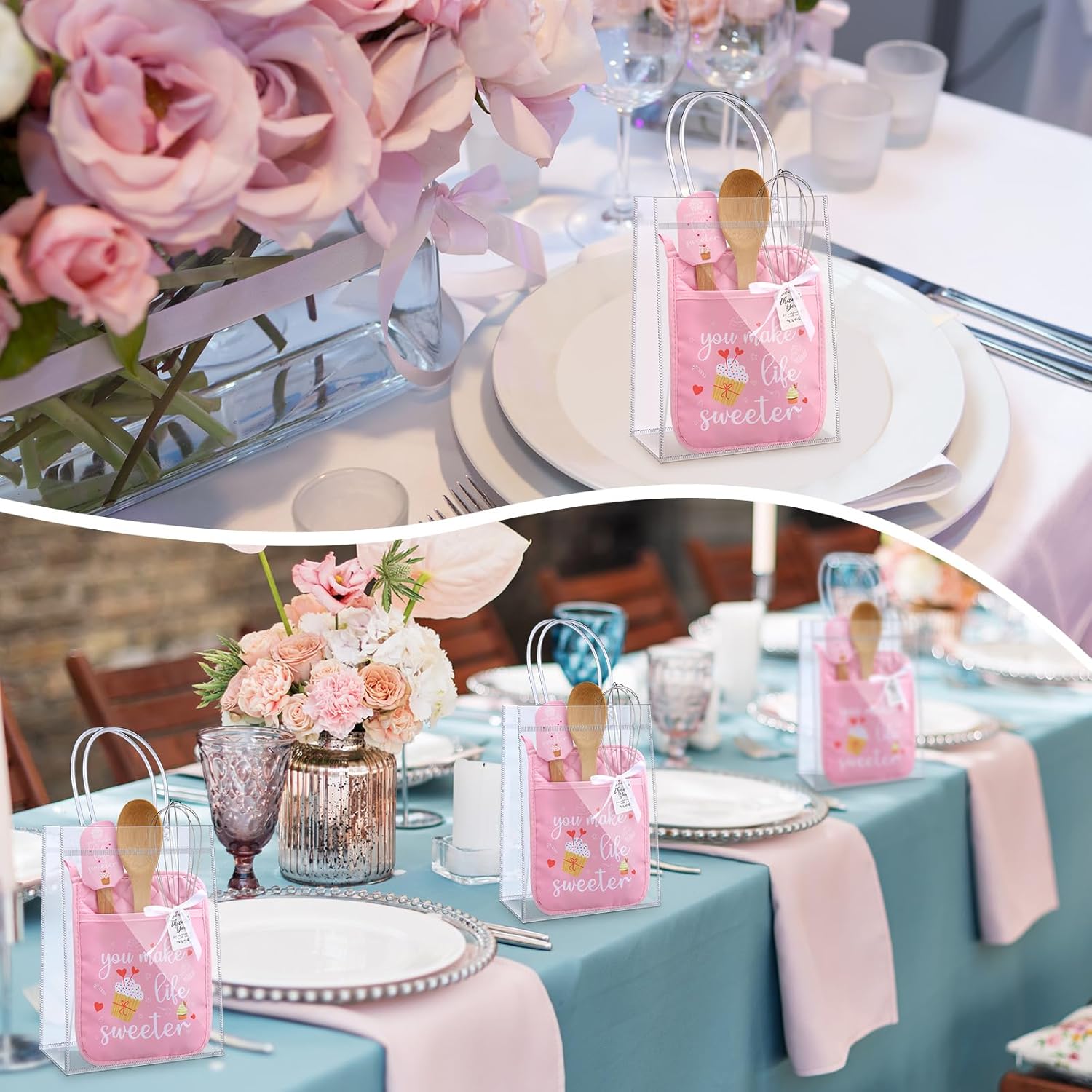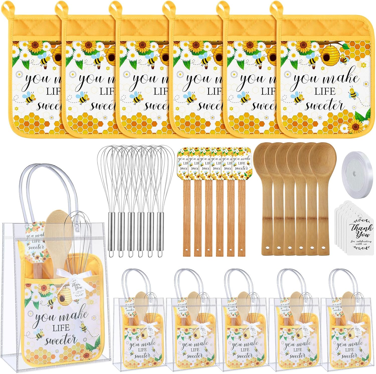 | Included Components | 1 Roll of white ribbon, 6 x Clear gift bags, 6 x Greeting cards, 6 x Potholders, 6 x Silicone spatulas, 6 x Spoons, 6 x Whisks |