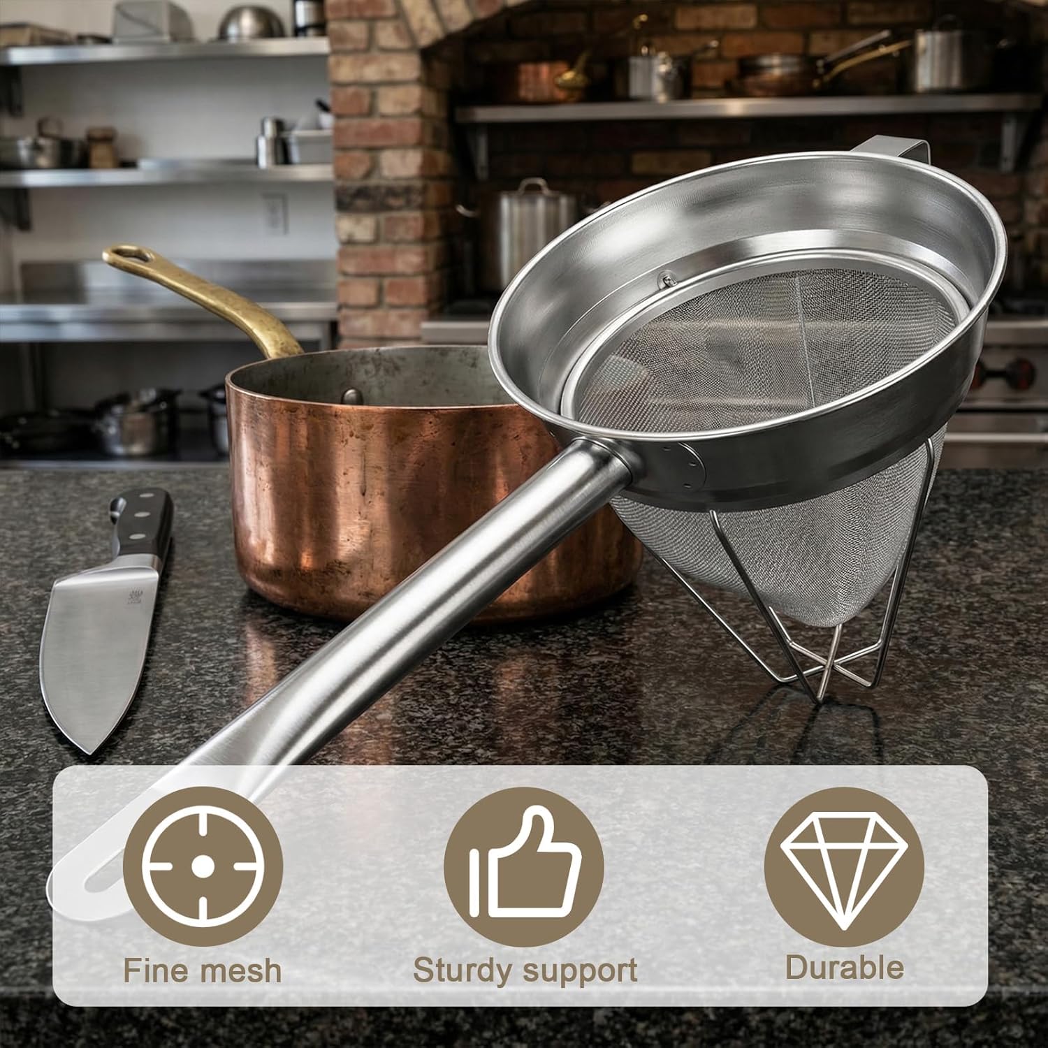 • VERSATILE KITCHEN TOOL: Perfect for straining stocks, broths, sauces, custards, and other liquids, making it an essential tool for professional and home kitchens