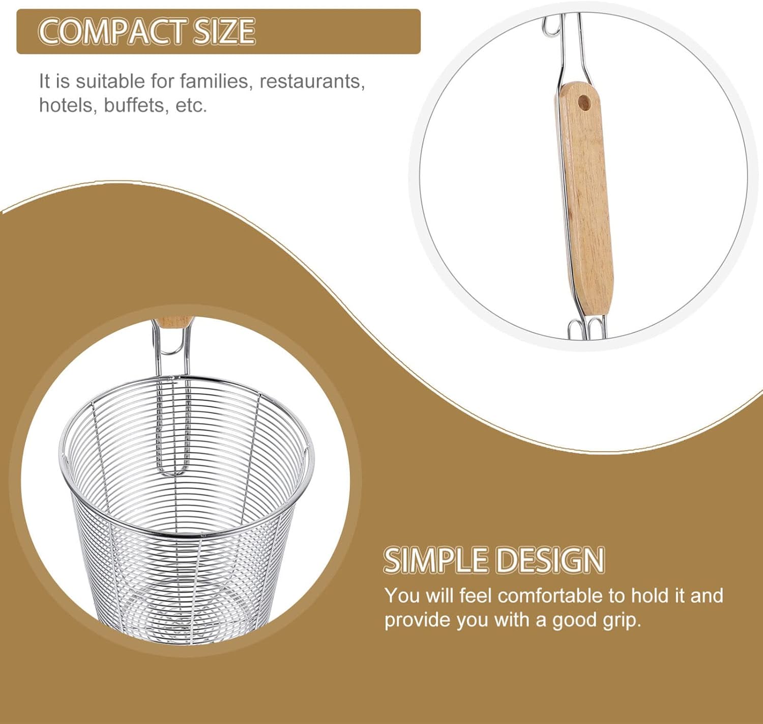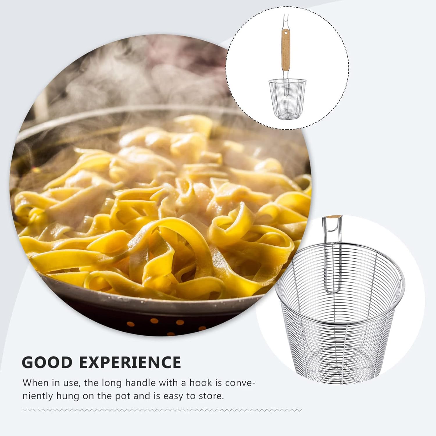 DescriptionOur colander is made from premium stainless steel and wood materials, practical and for a time use. Use this strainer spoon to serve noodles, pasta, and more, it is easy and convenient to use! The mesh design allows the water from the noodles to drain easily and quickly, very convenient to use. the Stainless Steel Pasta Strainer Basket Is Designed for Effortless Food Preparation, Featuring a Unique Mesh Design That Allows You to Easily Strain Pasta, Noodles, or Hot Pot Ingredients. Its Long Handle Safety by Protecting Your Hands and Arms from Hot Water or Oil Splashes. Equipped with a Convenient Hanging Hole, It can Be Stored Neatly on Your Kitchen Wall after Use. the Silver Finish Complements Any Kitchen Decor, While the Synthetic Material Durability and Easy Cleaning. Measuring 13.70 X 4.76 X 4.76 Inches and Weighing Only 80.70 Grams, This Lightweight yet Sturdy Colander Is Perfect for Home Use. Ideal for Tasks Like Draining Spaghetti, Rinsing Vegetables, or Sifting Fine Ingredients, It Provides a Comfortable Grip for Seamless Cooking Experiences. Keywords: Pasta Pot with Strainer Basket, Pasta Strainer with Handle, Pasta Basket, Colander, Drainer for Food, Fine Mesh Sieve, Mesh Colander, Stainless Steel Colander Strainer, Colador De Cocina, Spaghetti Strainer.Features-Material: Wood, stainless steel.- Size: 34.80X12.10X12.10cm/13.68X4.76X4.76in - Light weight and portable design, with a comfortable handle, it's easy to carry and storage. - Anti-burning handle with hanging design at the end, it's convenient to use. Easy to and store.- Premium handle design is easy to use, non- , with hanging design, easy to store. - Uniform distribution of the holes, easy to use, drain clean process can be faster.- Made of wood and stainless steel material, to ,pasta strainer basket is strong and for kitchen use.Package Including1 x Spaghetti Pasta Strainer