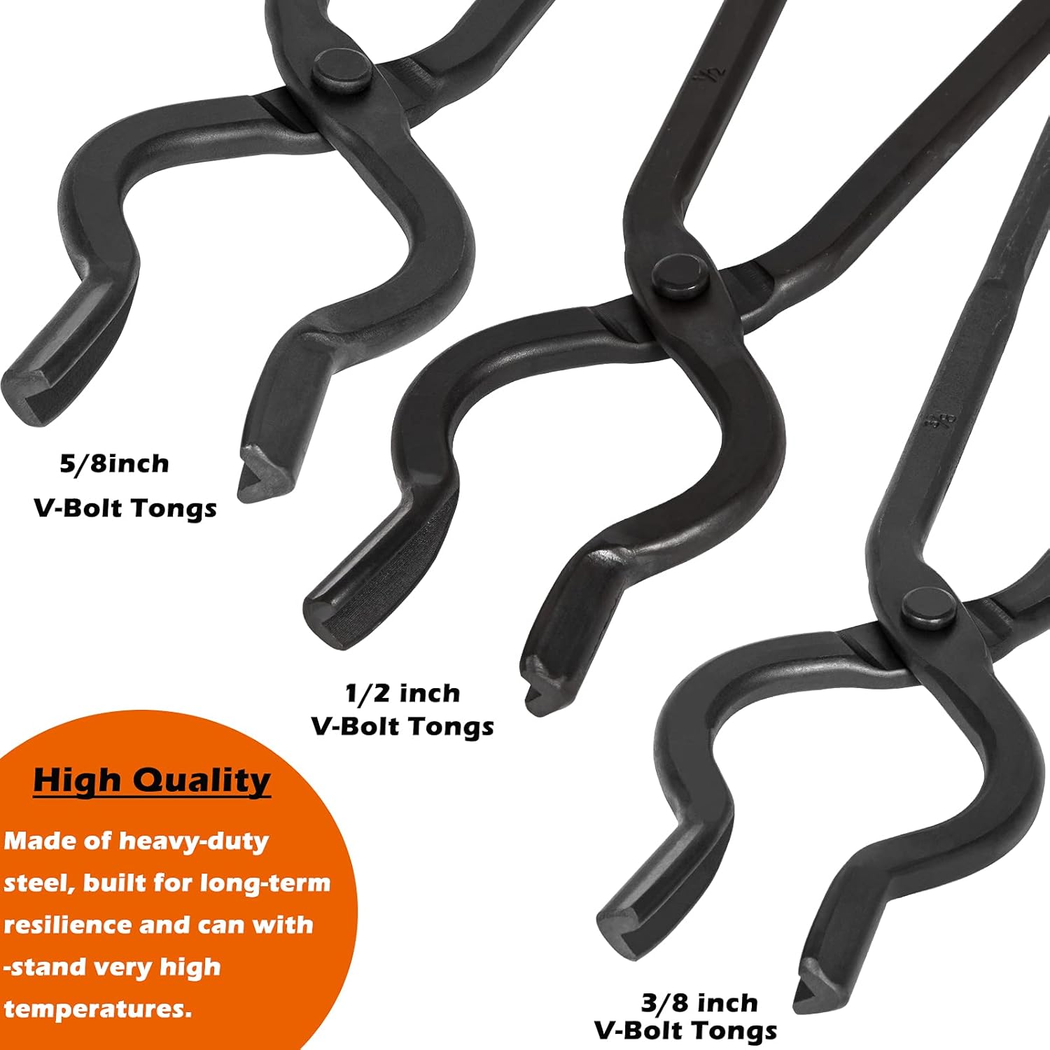 | Included Components | 3/8,1/2 and 5/8 V Bolt Tongs & 1/4 Flat Jaw Tongs & Single Pick Up Tongs & Scrolling Tongs |