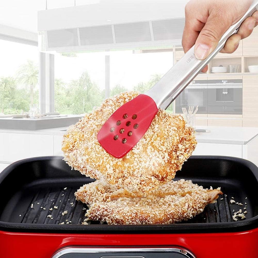 Strong, heat resistant, light weight and easy to handle.With round buckle, easy to store.The kitchen tongs for all kinds of food.Made of stainless steel and silicone, it is strong and .Safe non-stick cookware, very suitable for not scratching pots and pans.Name: Food ClipMaterial: stainless steel + siliconeColor: A, B, C 3 colors are availableDimensions: length 30 cm (black and red); length 31.5 cm (stainless steel)notes:Due to the difference in lighting and screen , the color of this item may be slightly different from the picture.Due to different manual measurement methods, please allow slight size differences.Only sell the main product food tongs, other decorations will not be soldPackage Included:1x food tongsSilicone grip that helps you get the best grasp on your food, they also include an ergonomic thumb rest to help alleviate pressure on fingers and thumbs for additional comfort