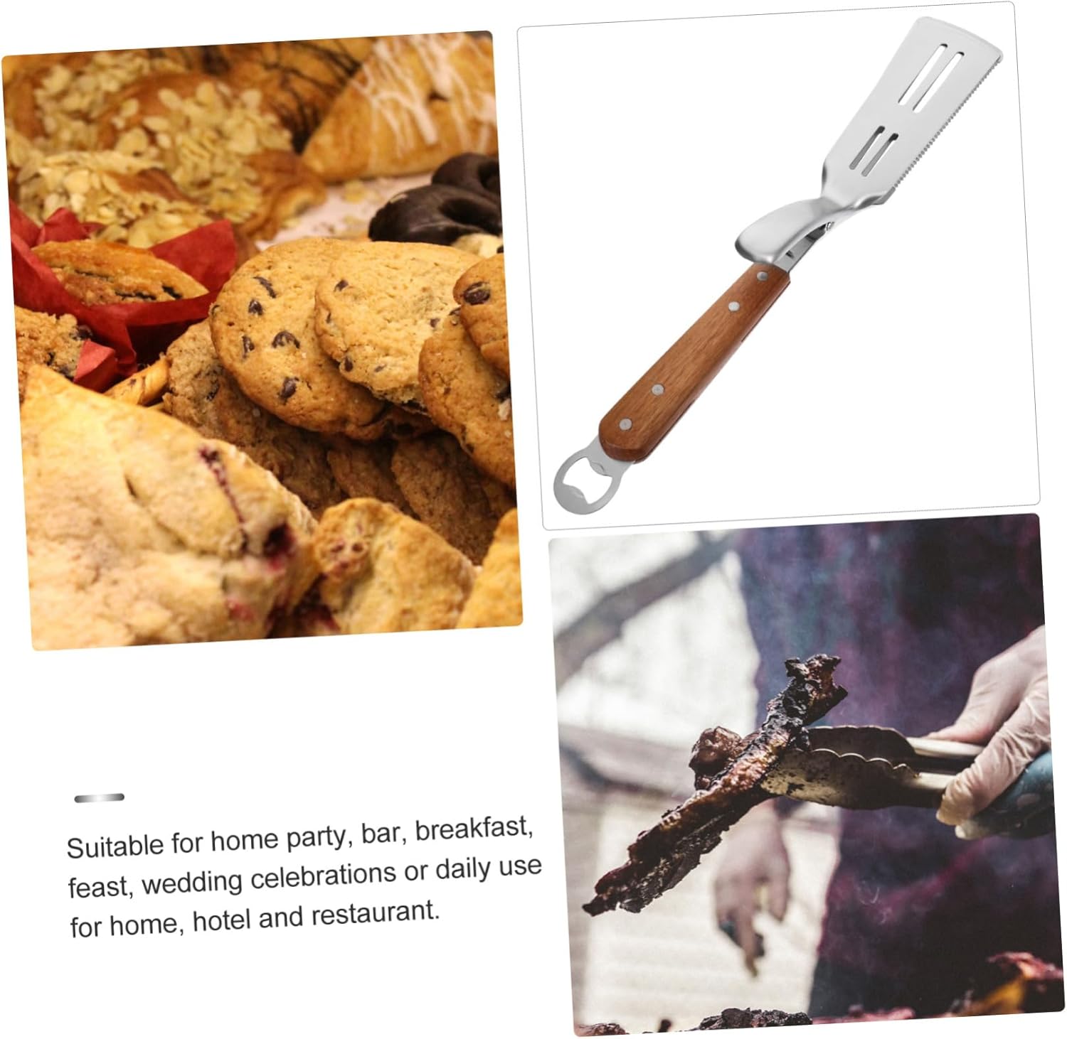 Package List 2 x Food Clip Characteristics -Color:Multi tongs -Material:Stainless steel, wood heat -Size:42.00X7.00X5.20cm/16.51X2.75X2 food tongs. - Suitable for party, feast, breakfast, afternoon tea or daily use for home, hotel and restaurant grilling tongs. - Barbecue, noodles, steak frying, buffets, etc. are all suitable, can meet your different needs bread tongs. - Safe and convenient to use, not easy to break or deform, reusable and can be applied for longtime food. - Fine workmanship, excellent texture, easy to clean, efficient and light, an excellent kitchen clip grill. - Proper size and lightweight, convenient and easy to storage, won't take up much space pan.Goods Informationbaked food tongs Made of stainless steel, wood, compact and practical.household bread tongs This is a food clip used in the kitchen.tong for cooking for clamping steak, bread, meat, cake, etc.BBQ tongs This is an excellent food tong that will give you much more convenience and more satisfying using experience