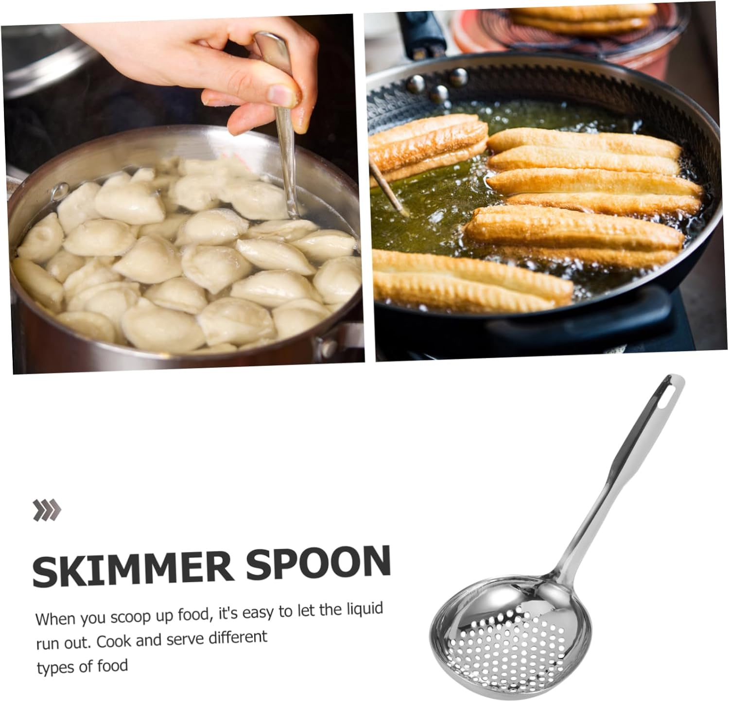 Package Include 5 x Skimmer Spoon Features -Size:33.50X11.20X3.00cm/13.17X4.40X1.18in Stainless Steel Slotted Spoons -Color:Silver Noodle Spoon -Material:Stainless steel big - Surface polished treatment, rounded edges, with smooth surface, not hurting hands cooker. - This Colander Spoon is with comfortable handle, perforated hole design, it's convenient to storage Stainless Steel Pasta Spoon. - With the hanging hole design, it can be hung on the wall, saving space and keeping it tidy Fried Food Spoon. - With this colander spoon, it will bring much convenience to your life, especially the cooking process pasta ladle. - A multi-function and versatile colander for french fries, poached eggs, vegetables, meat, wonton, etc Fried Food Strainer.Goods DescriptionFried Food Strainer When scooping up the food, it is easy to let the liquid flow out.Stainless Steel Spoon It is practical for mixing, cooking and serving different types of food.Spoon Besides, its handle is ergonomically designed, so it is easy to carry and handle.Fired Food Spoon This is a kitchen colander Spoon, which is made of stainless steel
