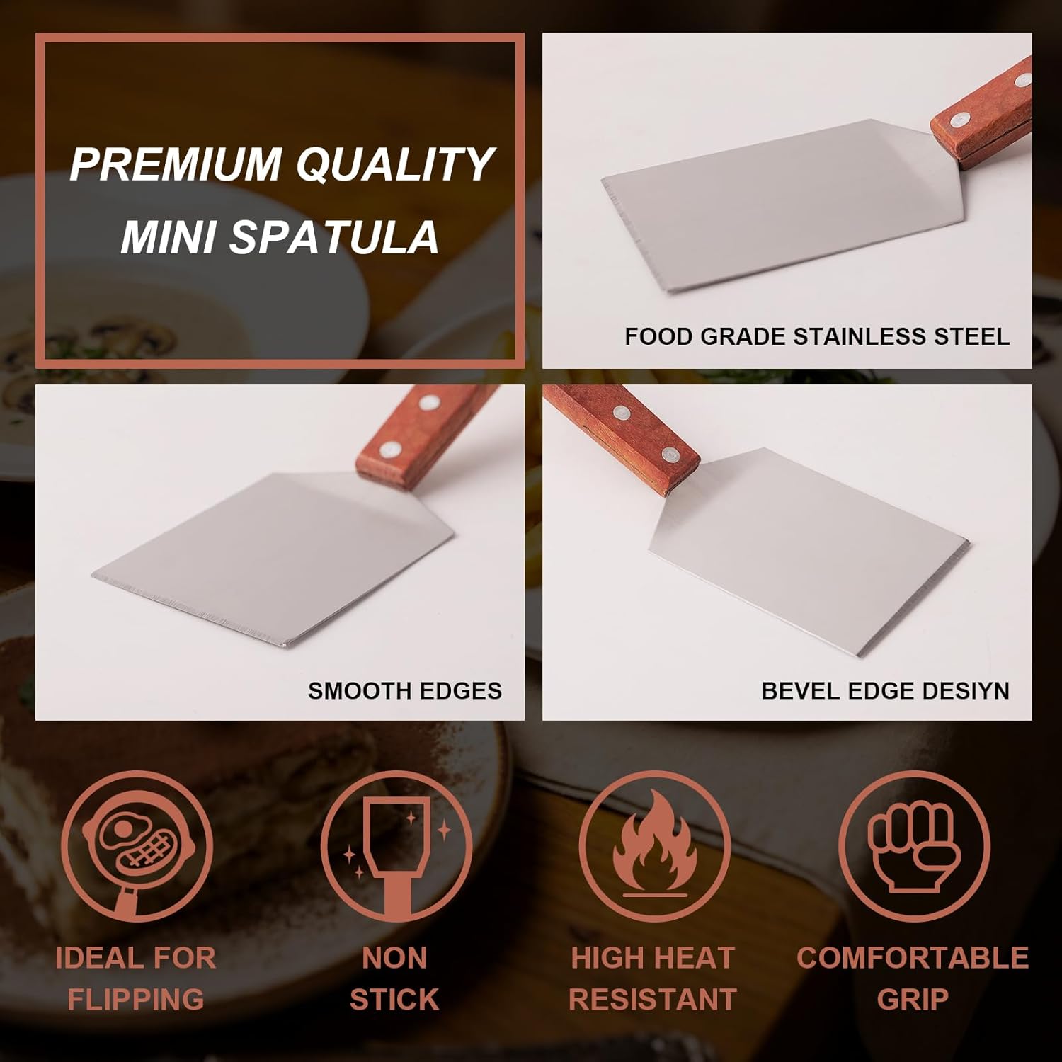 Features Thoughtful Gift Option: With a clean design and practical size, this baking spatula set is suitable for both indoor kitchens and outdoor activities. It makes a thoughtful gift for home cooks, baking lovers, campers, and anyone who enjoys preparing and serving food for gatherings or special occasions. Essential Kitchen Tool: Designed for smooth lifting, turning, and serving, this cooking spatula helps handle baked goods and small portions with ease. A reliable choice for daily cooking, baking, and dessert preparation without unnecessary effort. Easy Storage: The compact size allows for convenient storage in drawers, utensil holders, or travel kits, helping keep your kitchen or cooking area neat and organized. Natural Wooden Handle: The natural wood handle adds warmth and a classic look while offering a comfortable grip. Its balanced design makes the spatula both stylish and practical for everyday use in different kitchen settings. Everyday Use: For long-lasting performance, clean and dry the spatulas after use and store them in a dry place. Proper care helps maintain their appearance and usability over time. Smart Beveled Head: The beveled edge is designed to slide easily under food, allowing you to lift, portion, and serve items neatly onto a plate with better control and precision. Specifications: Material: Stainless steel, wood Color: As shown in the pictures Size: 8 .1× 2.5 inches Package Includes: 30 x Brownie Spatulas