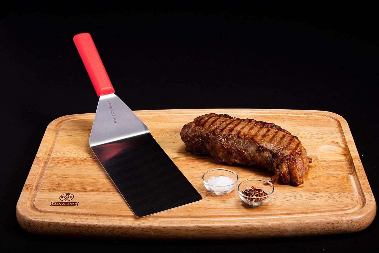About this item Professional-Grade Performance The Mundial 5600 Series Turner features an 8 x 4 inch food service grade stainless steel blade, designed to meet the demands of professional kitchens. Whether you're turning, flipping, serving, or stirring, this turner ensures optimal performance with every use. Ergonomic and Non-Slip Handle The handle is not only visually striking but also ergonomically designed to provide a secure, non-slip grip. This ensures comfort and control, even during extended use, making it an essential tool for both home cooks and professional chefs. High-Quality Materials Constructed from high-grade stainless steel, the blade offers excellent durability and resistance to corrosion. The robust handle is made from high-quality, non-slip polymer, ensuring long-lasting performance and ease of maintenance. Versatile Kitchen Tool This versatile turner is perfect for a wide range of kitchen tasks, including turning and flipping meats, vegetables, and other food items, as well as serving and stirring. Its sturdy design and reliable performance make it a must-have for any kitchen. Lifetime Limited Warranty The Mundial 5600 Series Turner comes with a lifetime limited warranty, offering peace of mind and assurance of its exceptional quality and durability. Features and Benefits: Blade Dimensions: 8 x 4 inches Blade Material: Food Service Grade Stainless Steel Handle Color: Yellow Handle Design: Ergonomic and Non-Slip for Secure Grip Versatile Use: Ideal for Turning, Flipping, Serving, and Stirring Food Lifetime Limited Warranty: Ensuring long-term reliability and satisfaction Product Specifications: Brand: Mundial Series: 5600 Blade Dimensions: 8 x 4 inches Blade Material: Stainless Steel Handle Color: Yellow Handle Material: High-Quality Non-Slip Polymer Weight: Approximately 0.7 lbs Dimensions: 13 x 4 x 1 inches