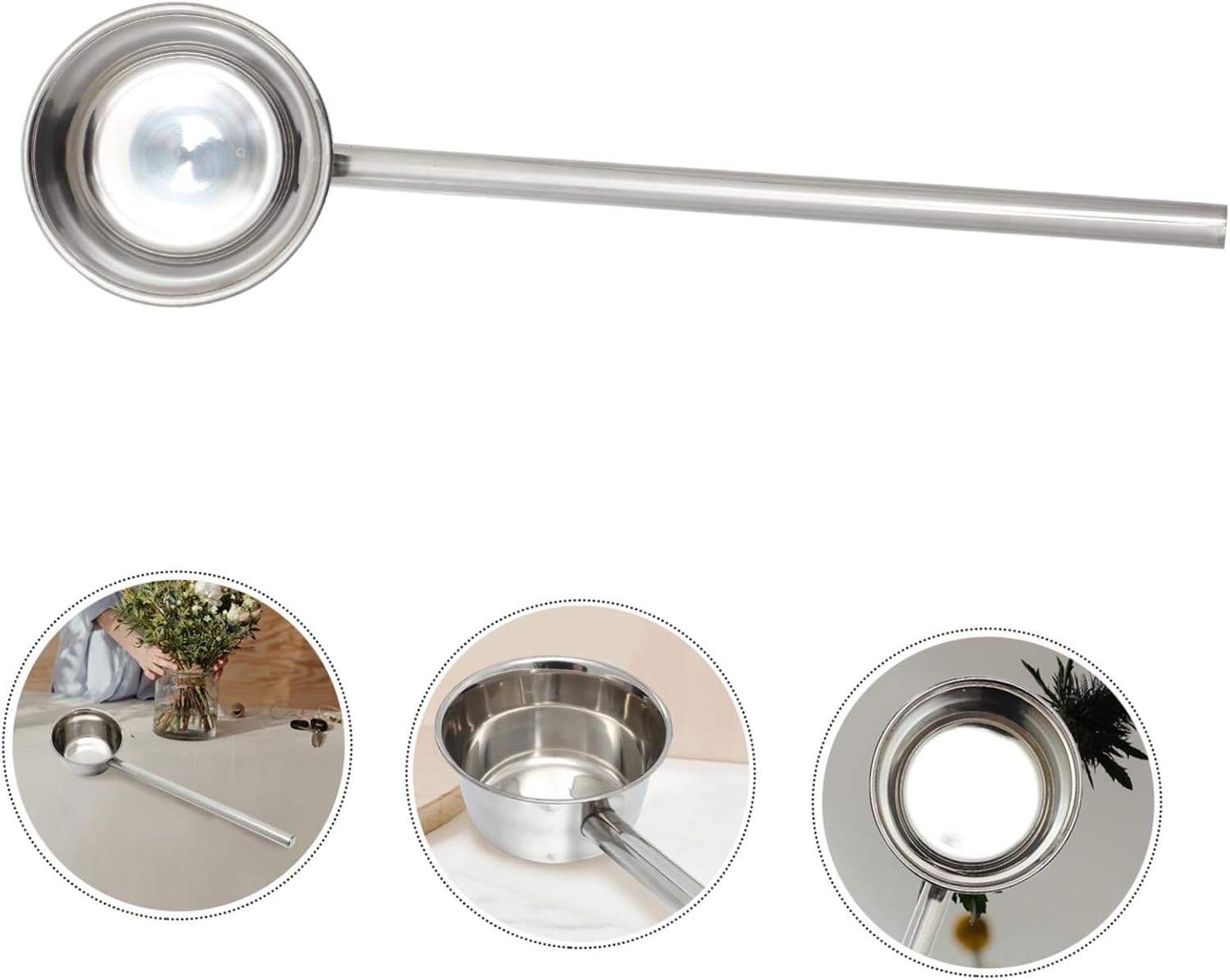 Package Include 1 Ladle Characteristics - Size: 57.00X14.00X7.50cm/22.40X5.50X2.95in long handle ladle -Product Info:Extended water scoop -Material:Stainless steel household water scoop -Note: Spoon diameter is 14cm, handle length is 45cm Water Bailer. -Color:Silver Bailer -It is simple , but practical in use, brings great convenience to you portable soup ladle. -Stainless steel materials allow this spoon to touch water and food, can use it with confidence Large Water Ladle. -With ergonomic design, comfortable to hold and not easy to slipping off. Practical and Stainless Steel Water Ladle. -It can be used to scoop water to clean vegetables, fruits, etc. High class stainless steel material, integrated molding, Water Ladles for Dining Hall. -It can be widely used in homes, canteens, restaurants, rural areas, gardens and other places stainless steel ladle.Goods InformationWater Bailer Suitable for families, restaurants and other occasions.Stainless Steel Dipper Share with your friends and family, because this is a great housewarming gift.Household Water Ladle Made of safe materials, , convenient and labor-saving.long handle ladle This product is a water scoop