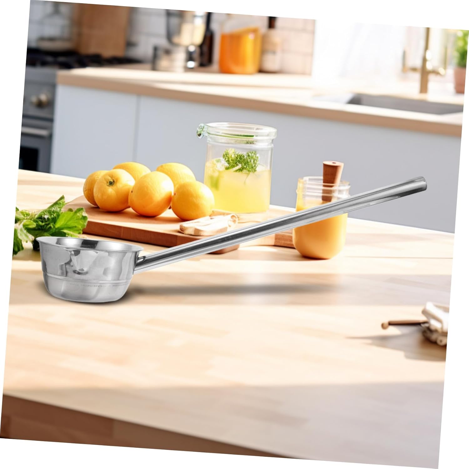 Package List 1 ladle Characteristics -Extended handle design: the long handle design makes it convenient to scoop water, reducing the need to reach or bend excessively long handle scoop -great stainless steel: constructed from great stainless steel, this ladle is resistant to stains, and food residues, ensuring cleaning water ladle -Size:47.00X15.00X8.00cm/18.47X5.89X3.14in (47cm) ladles for cooking -Size:56.50X15.00X8.00cm/22.20X5.89X3.14in (56.5cm) stainless steel ladle - Color: Silver stainless steel ladle spoon -Versatile use: suitable for various settings including home, garden, and farm, making it a versatile addition to your kitchen tools sauce ladle -great for busy kitchens: this wellbalanced utensil is ideal for any busy kitchen, offering convenience and ease of cleaning as key benefits water ladle stainless steel -Ergonomic grip: the ladle features an ergonomically designed handle that provides a secure and comfortable grip, reducing hand strain during use ladle with a long handle -Material:Stainless steel long handle stainless steel ladleGoods Descriptionwater ladle stainless steel This stainless steel ladle features a long handle and a pour spout, making it ideal for serving soups, stews, and porridges.ladles for kitchen use The sleek design adds a touch of elegance to your kitchen utensils, while the ergonomic handle provides a comfortable grip.long handle water ladle Its great construction it can withstand frequent use in both home and commercial kitchens
