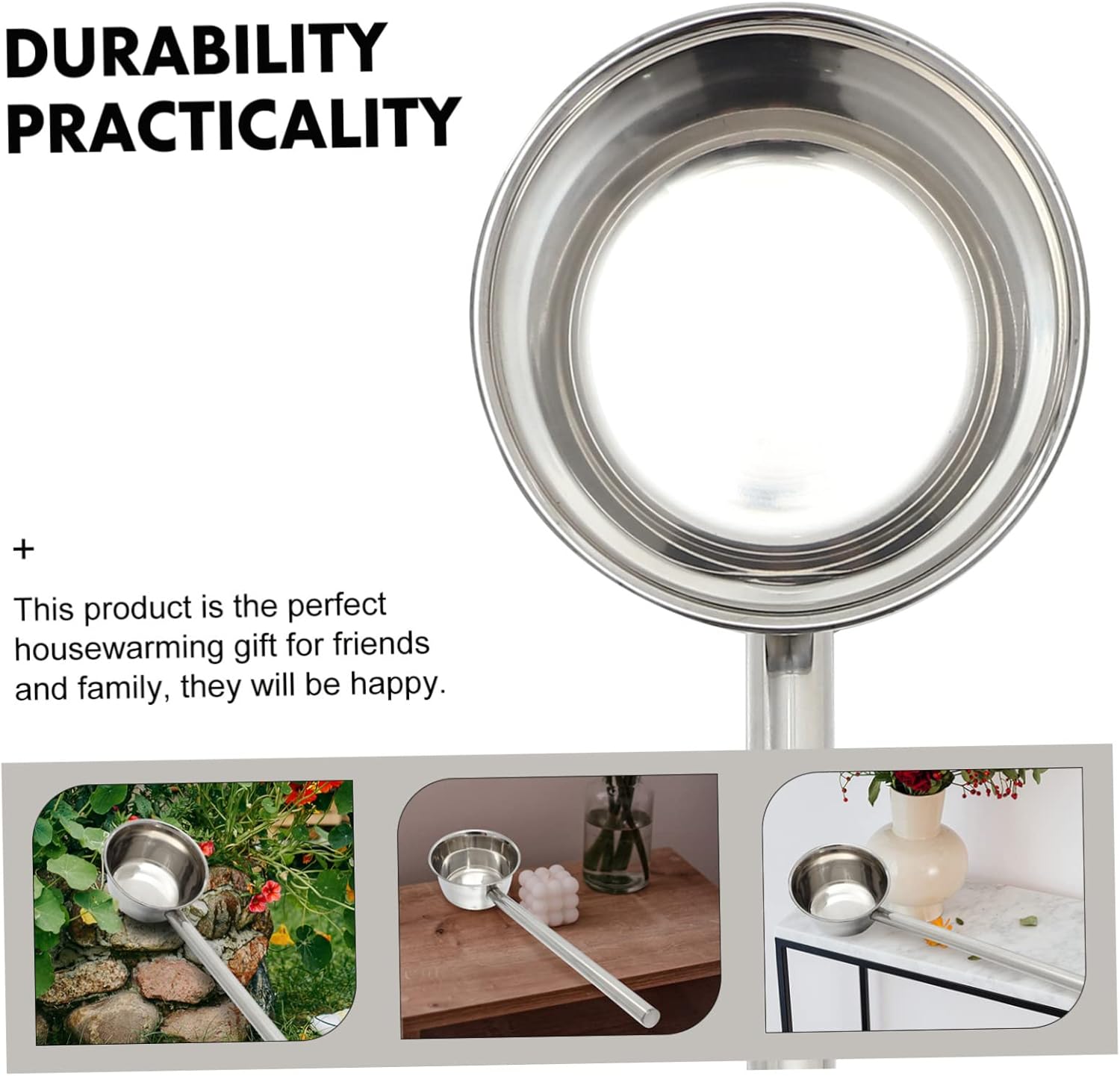 Package List 1 Ladle Characteristics -Size:56.00X16.00X8.00cm/22.01X6.29X3.14in soup scoop -Color:Silver Metal Water Ladle -Note: Spoon diameter is 16cm, handle length is 45cm Stainless Steel Dipper. -Product Info:Extended water scoop -Material:Stainless steel water spoon -This product is the perfect housewarming friends and family, they will be happy long handle ladle. -Perfect for home, hotel, restaurant, canteen, kitchen use. Convenient and practical long handle spoon for canteen. -Make cooking and pouring easy with this ladle spoon, which can give you a great usage experience Metal Watering Ladle. -Fine workmanship, , fine details, and not easy to break. Waterproof, , corrosion and rust resistant Long Handle Bailer. -Long handle design, very easy and convenient to grip, and soup won't dirty or burn your hands when you ladle soup out of a pot multipurpose water ladle.Goods DescriptionMetal Water Ladle It is one of the for you.Bailer Are you still looking for a multi-function long handle water ladle? Then, our wood water ladle is carefully prepared for you.Bailer for Restaurant It can be also used as a water ladle for fetching water in kitchen.Stainless Steel Dipper Suitable for fetching porridge, soup, wine or watering flowers