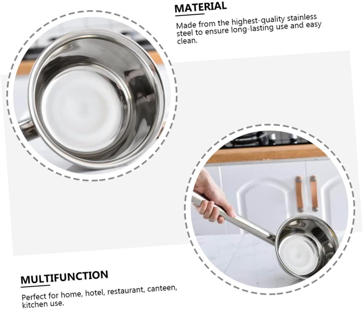 Package Include 1 ladle Features - Size: 55.50X14.00X7.50cm/21.81X5.50X2.95in long handled water ladle - Color: Silver water scoop - Material: Stainless Steel soup ladles - Multifunctional, it can be used to be a water ladle, you can also use it as a cooking tool stainless steel water ladle. - Made of with workmanship water ladle. - Lengthened handle, easy to use, suitable for kitchen use or watering flowers use ladle kitchen water. - Easy to clean and maintain, don't worry about will leave residual dirt water utensils. - Finely processed, not easy to deform, and can be of reliable soup ladle.Goods Descriptionsteel ladle Fine workmanship, it the practicality.metal soup ladle Features the stainless steel material, which has high durability, not easy to deform.ladel This water ladle is made of , which can withstand the use