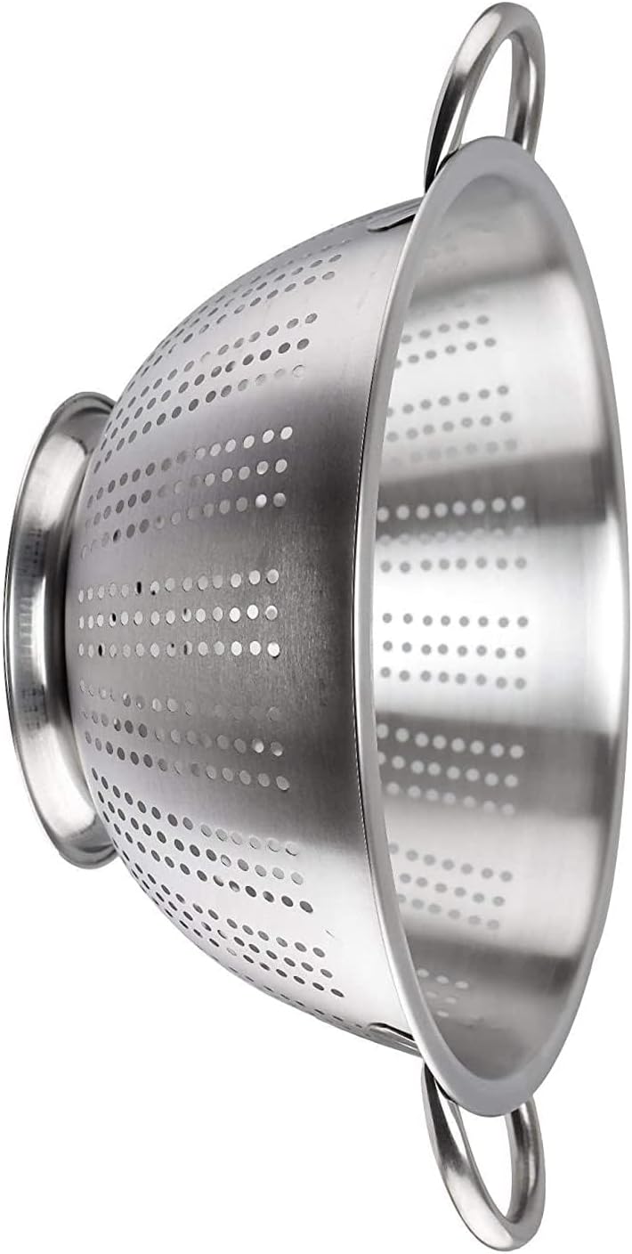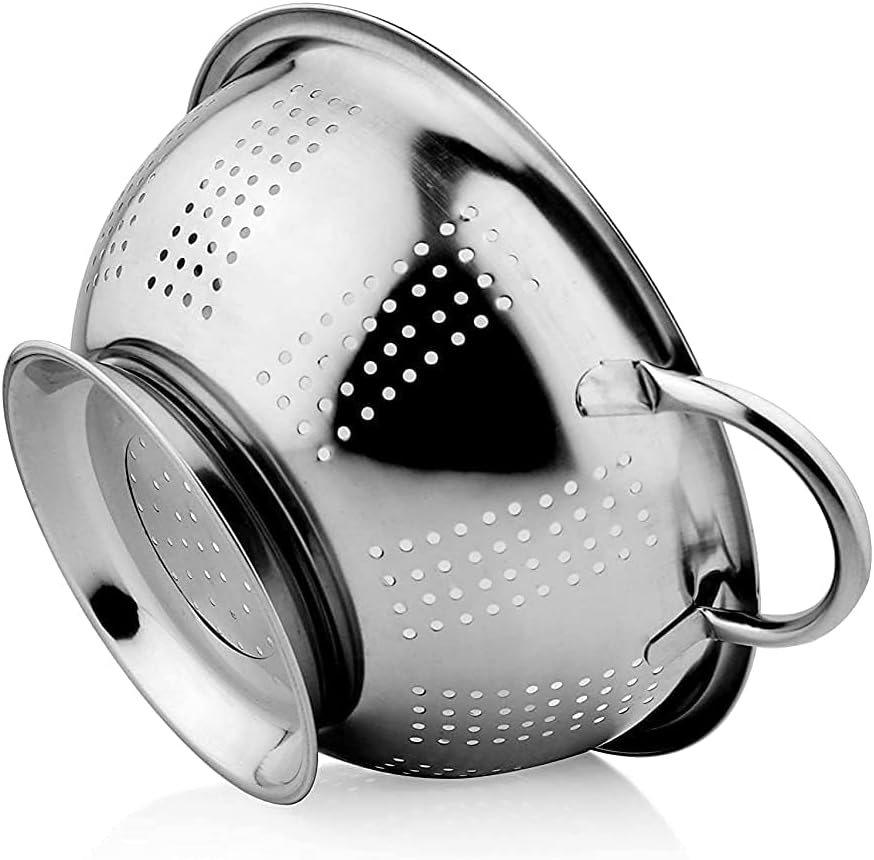 This Stainless Steel Colandar/Strainer is made of premium Quality Stainless Steel material and with food grade. This is ideally used for kitchen in draining Rice,Dals, Fruits, Vegetables, Grains,Pastas, Noodles and other foods. This Colander is an essential for kitchenware collections for quick and easy cook.This comes with heavy guage which will be sturdy and long lasting product. Mirror Finish and Dishwasher safe. Product content: Coconut Stainless Steel Colander/Strainer Vegetable Basin Fruit Basket for Kitchen -1 Unit ( Dimension - Width -8 Inches and Height -3.5 Inches) .