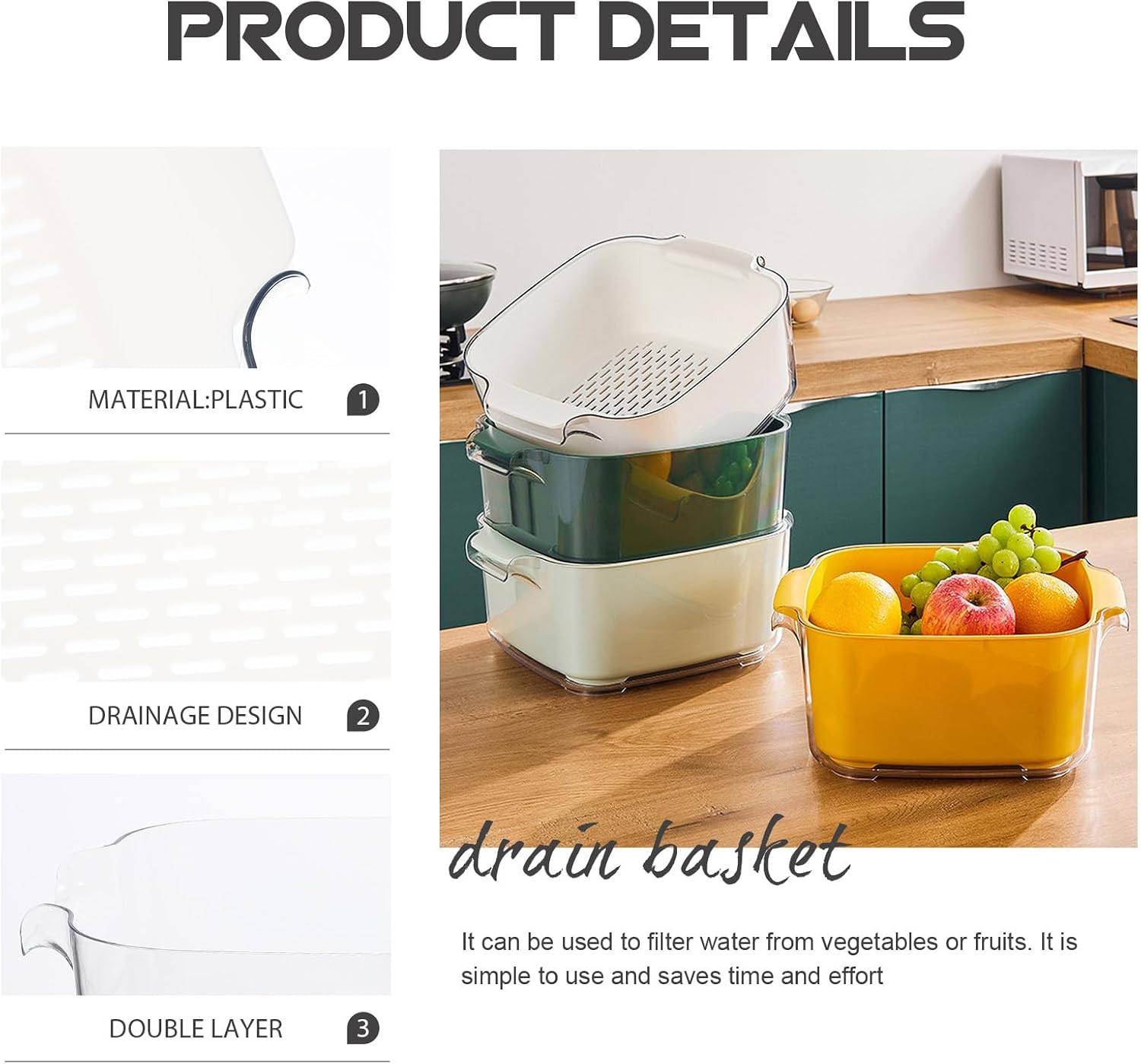 Package Include 1 x Draining Basket with Washing Basin Features -Product Info:Double-layer vegetable wash basin -Material:Plastic - Size: 28.70X26.00X12.00cm/11.28X10.22X4.72in -Color:White - The drain basket is safe to use. It is not easy to break or deform and can be used for a long time kitchen fruit strainer. - It can be used to filter water from vegetables or fruits. It is simple to use and saves time and effort multifunctional fruit washing basin. - If you are looking for a practical drain basket, this product will be a good choice kitchen food strainer basket. - You can give it to your friends as a housewarming and give them a little surprise kitchen drainage basket. - It is suitable for cleaning fruits, vegetables and other foods, which can provide convenience for your daily life draining basket.Goods Informationfruit strainer basket Are you looking for a professional, yet Washing Basket? Are you in search of a sturdy, trustworthy draining basket that can do multiple jobs at once? , ! Our professional double-layer basket set meet you needs.fruit washing and vegetable draining basket It is one of the for you