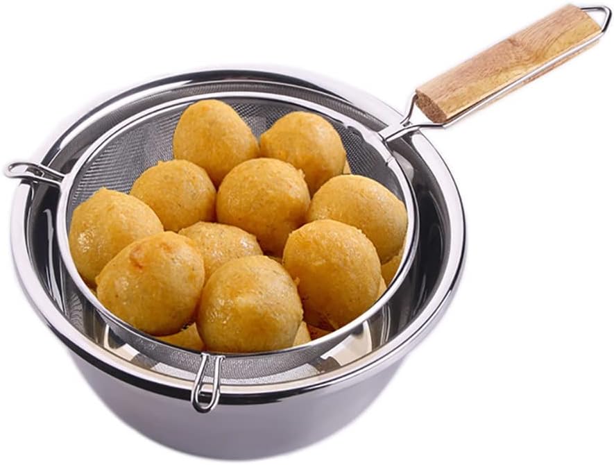 Stainless steel filter net, easy clean and rustless.Wooden handle providing better heat dissipation.Multifunctional colander for different cooking need.High precision polishing, easy to clean and .The concave mesh safely captures food while releasing water, oil and other residues.Item Name: ColanderMaterial: Stainless Steel + WoodFeatures: , Mesh, Cooking Tool, Anti-rustSize: 20cm/7.87" (Approx.)Note:Due to the different monitor and light effect, the actual color of the item might be slightly different from the color showed on the pictures. Thank you!Please allow 1-2mm measuring deviation due to manual measurement.Quantity : 1 pcs