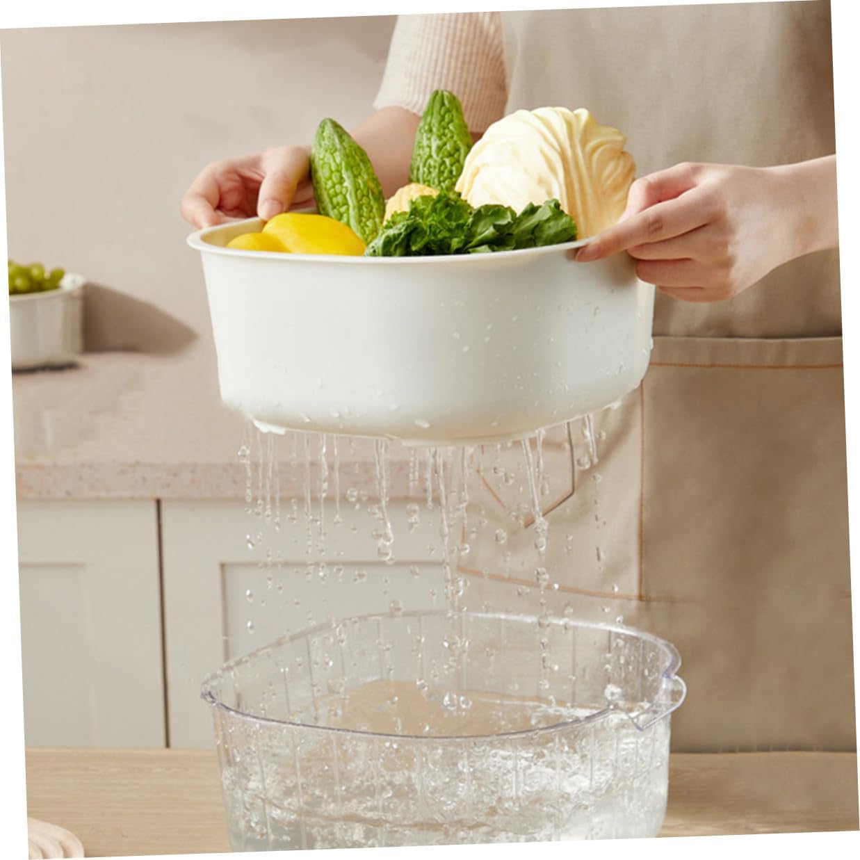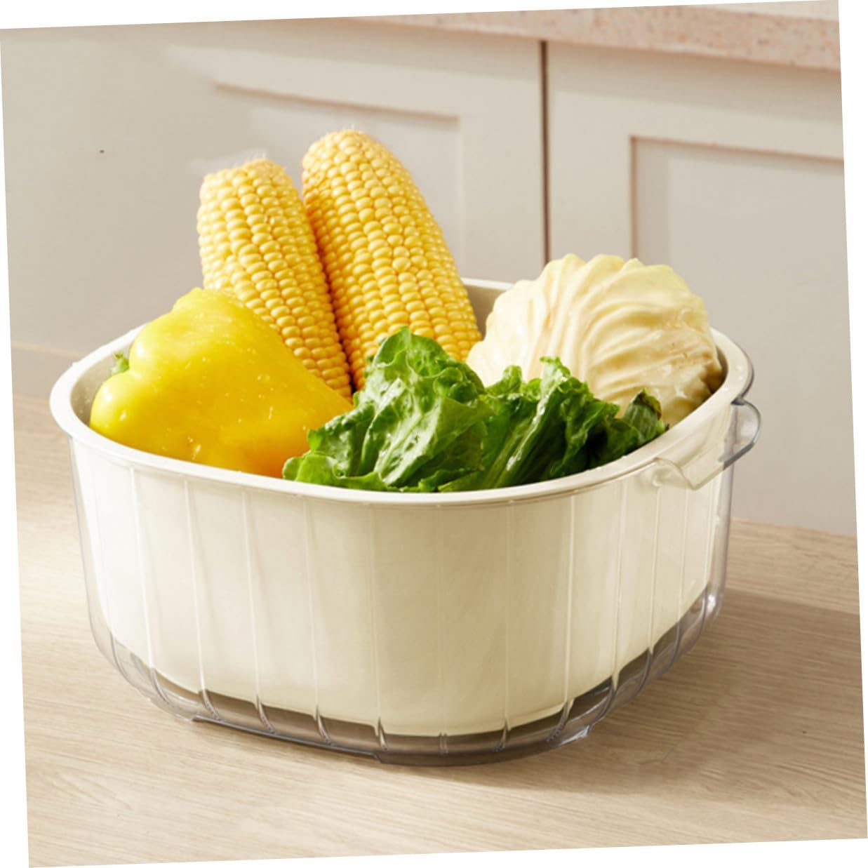 Package List 3 x Draining Baskets Characteristics -Size:22.50X21.00X9.50cm/8.84X8.25X3.73in -Size:16.60X15.50X7.80cm/6.52X6.09X3.07in -Color:White -Product Info:Double drain basket -Material:PP, PET -Size:28.00X26.00X11.60cm/11.00X10.22X4.56in -The vegetable washing basket is made of material, has a and is not easily deformed. -This washing basket is easy to use, the drainage parts are evenly distributed, and it has a wide range of uses detachable drain basket. -Good material and , you can . -Share it with your friends and family, because it is practical and they will like it drainer fruits washing basin. -Hollow design, fast drainage, easy to use, suitable for washing vegetables, fruits, etc drain baskets.Goods Descriptionwashing vegetable baskets It is cute and delicate.fruits draining basket This vegetable washing basket is made of good material for safe and healthy storage.multi functional drain basket This is the kitchen storage basket.detachable fruits washing basket Safe, and convenient.kitchen dual-layer draining basket This kitchen storage basket can help you store and filter vegetables and fruits