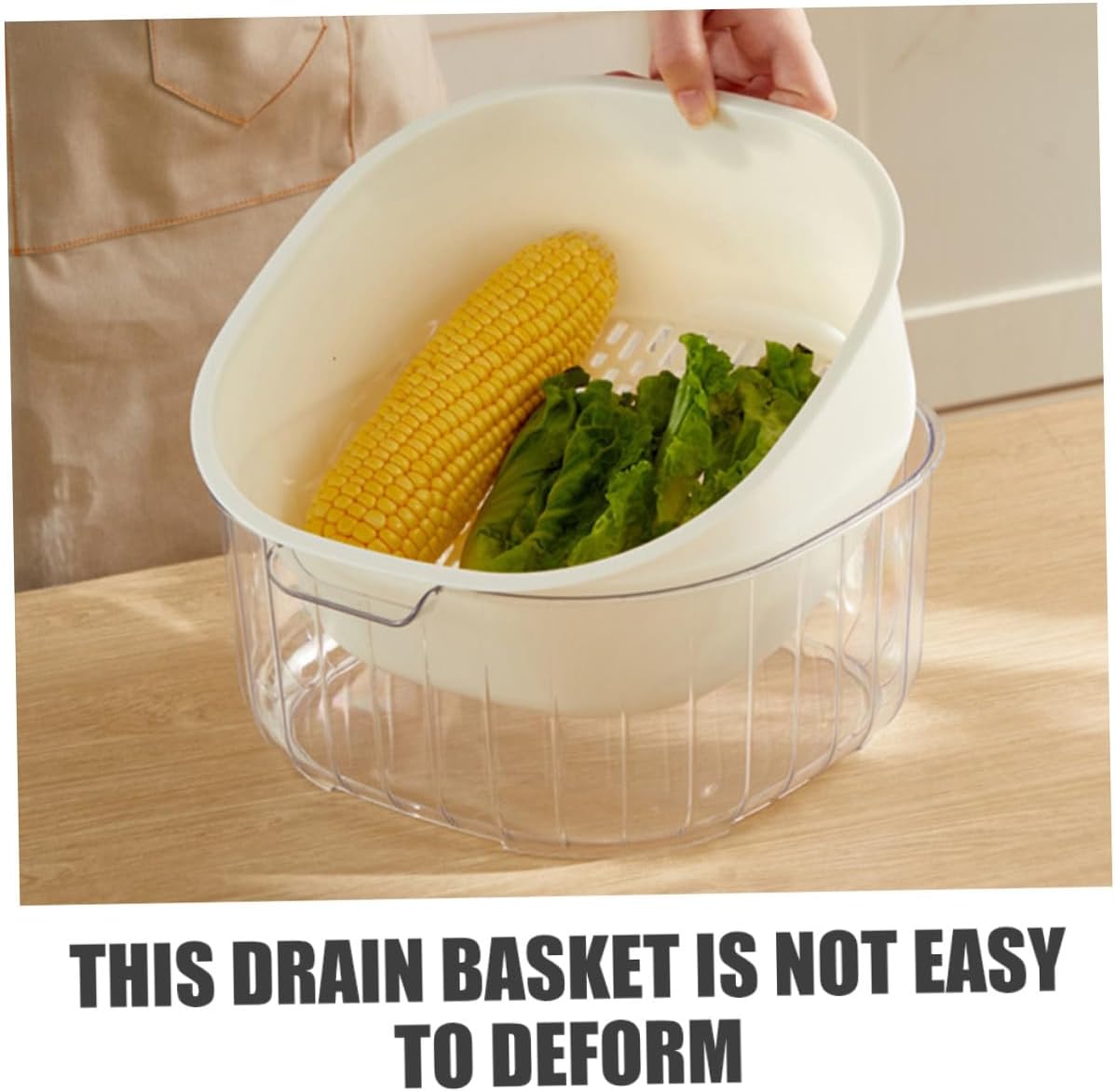 Package List 3 x Draining Baskets Characteristics -Size:22.50X21.00X9.50cm/8.84X8.25X3.73in -Size:16.60X15.50X7.80cm/6.52X6.09X3.07in -Size:28.00X26.00X11.60cm/11.00X10.22X4.56in -Color:White -Material:PP, PET -Product Info:Double drain basket -Made of good material, it is waterproof, , safe to use and not easily deformed. -The hollow design at the bottom are of uniform size and the drainage speeds are fast. -Upper basket drain, lower basket water storage, drain and cleaning can do at the same time, convenient and practical washing vegetable baskets -Thickened design, , load-bearing without deformation, safe and practical to use draining basket for fruit. -The edges are smooth, it will not hurt your hands when used, and there is no burr. This drain basket is not easy to deform, which brings you of convenience draining basket.Goods Descriptiondraining fruit basket Using materials, practical and .kitchen use washing basket If you are looking for a professional and drain basket, then your research is here.drain basket It is not easy to deform, which brings you of convenience.washing vegetable baskets That's because our product can meet your needs