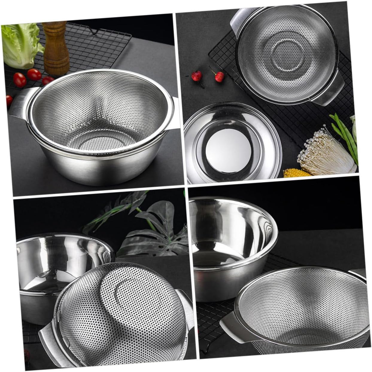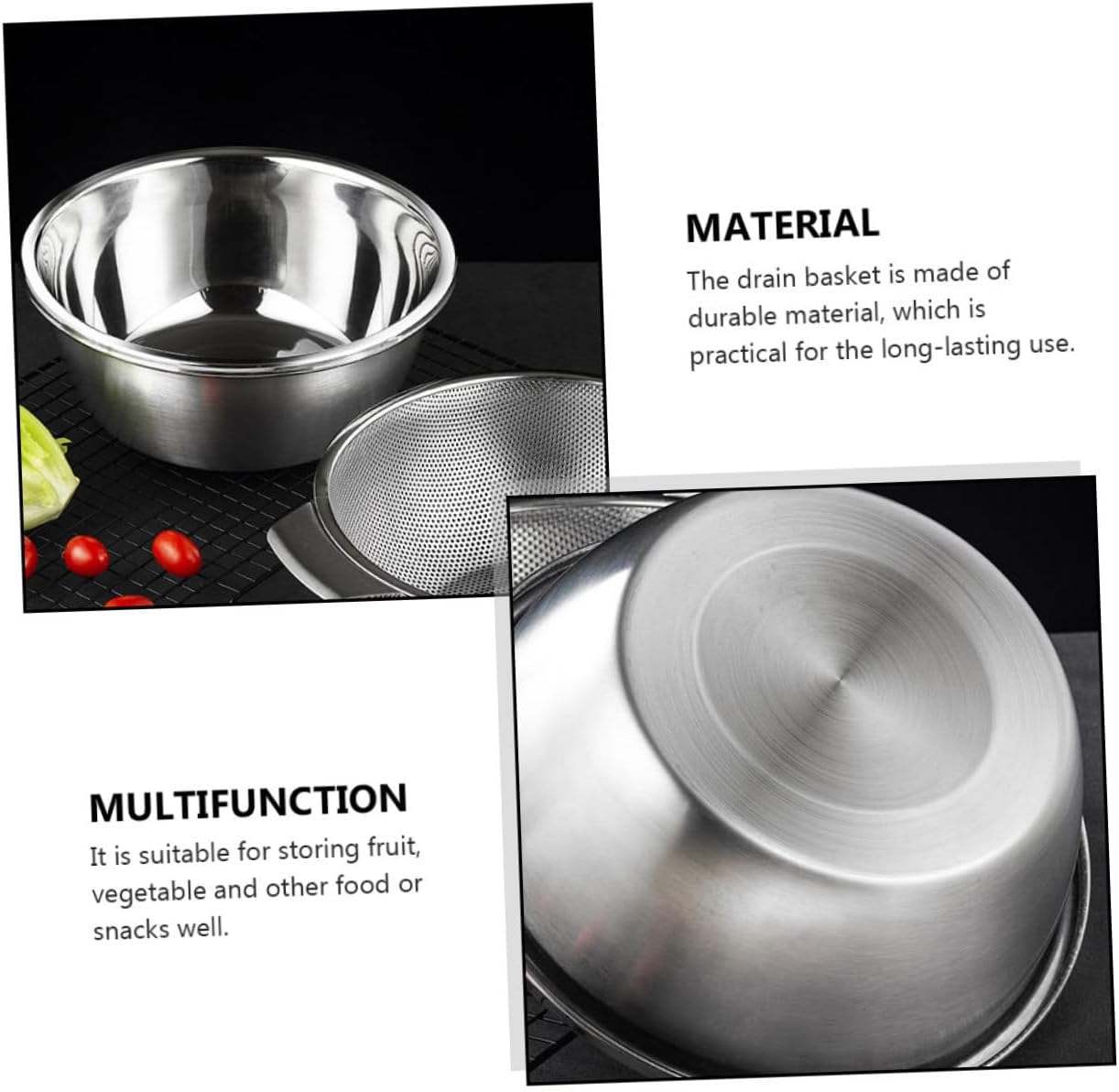Package List 1 x Set of Draining Basket Characteristics - Material: Stainless steel. - Color: Silver. -Product Info:Two-piece drain basket set - Size: 26.00X26.00X10.00cm/10.22X10.22X3.93inch. - The scientific drain structure design achieves the faster and more efficient draining kitchen basket. - It is suitable for storing fruit, vegetable and other food or snacks well draining basket. - Unlock more functions, can be when the draining basket storage basket, basin and so on multifunctional fruit washing basket. - Double-layer design, which achieves efficient food storage and cleaning drainage basket filter. - The drain basket is made of material, which is practical for the use.Goods Descriptiondraining basket The scientific drain structure design achieves the faster and more efficient draining.drainage basket It is suitable for storing fruit, vegetable and other food or snacks well.kitchen draining basket The drain basket is made of , which is and well-designed.kitchen drainage basket Features the strainer and basin design, provides convenience to the storage