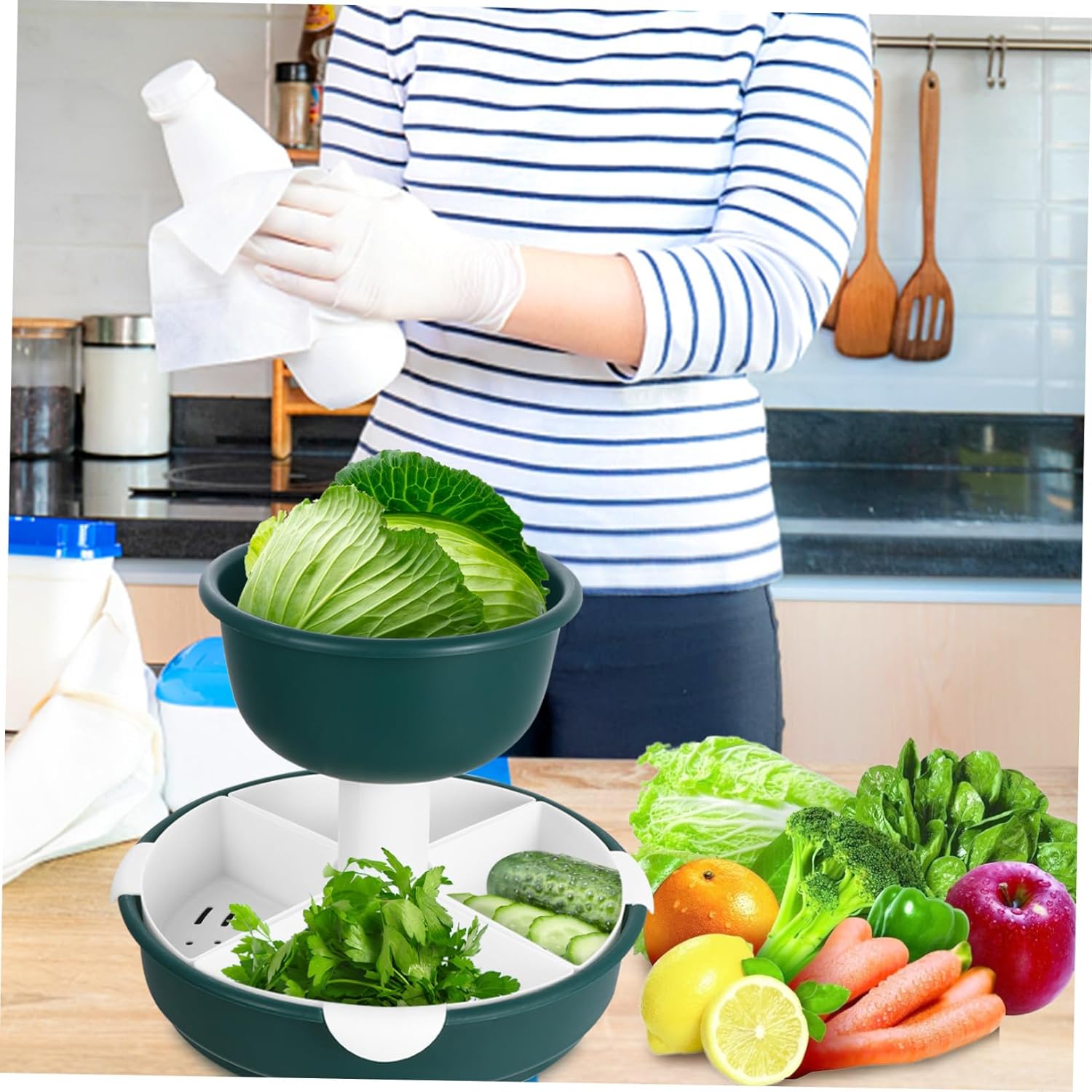 Package Include 1 x Draining Basket Features - Size: About 32.00X20.70X25.50cm/ 12.58X8.14X10.02inch Fruit Draining Basket. -Product Info:Double-layer hot pot platter - Material: Plastic Kitchen Supply. - Rotatable and detachable design, convenient and easy for you to use Home Basket. - Also can be a good housewarming choice for your friends, they will like it Creative Fruit Basket. - Large-capacity storage and , essential for home kitchen Plastic Fruit Basket. - The double-layer design is a multifunctional basket for washing vegetables and draining water Rotatable Basket. - Its material is high-grade plastic, environmentally friendly, wear-resistant and , not easy to deform, and easy to clean Food Holder.Goods DescriptionDraining Water Basket Therefore, it is really a wonderful kitchen helper for choosing.Washing Fruit Basket The multi-purpose drain basket is made of safe plastic, and can be used for storing and washing fruits and vegetable with good water filtering effect.Rotatable Basket Detachable design can well save space when not in use