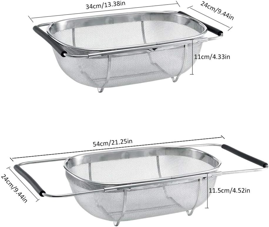 Comes with a rubber handle on both sides, the drain basket is easy to carry. Use for food preparation like rinsing and washing fruits, vegetables, grains and pastas. The baskets concave mesh net easily catches and sifts, strains or drains small ingredients. Telescopic handle, to meet your needs to the greatest extent, suitable for different sizes of sinks. High quality thick food grade stainless steel material, corrosion resistant, no rust, firm and stable structure. Specification: Material: stainless steel, rubber. Size: S:18*27*11cm, L:24*34*11cm. Color: show as pictures. Notes: There might be a bit color distortions due to different computer resolutions. Please allow slight dimension difference due to different manual measurement. Package include: 1 * Retractable Drain Basket. It is more stable to place the dish in the card slot and drain the water more effectively.