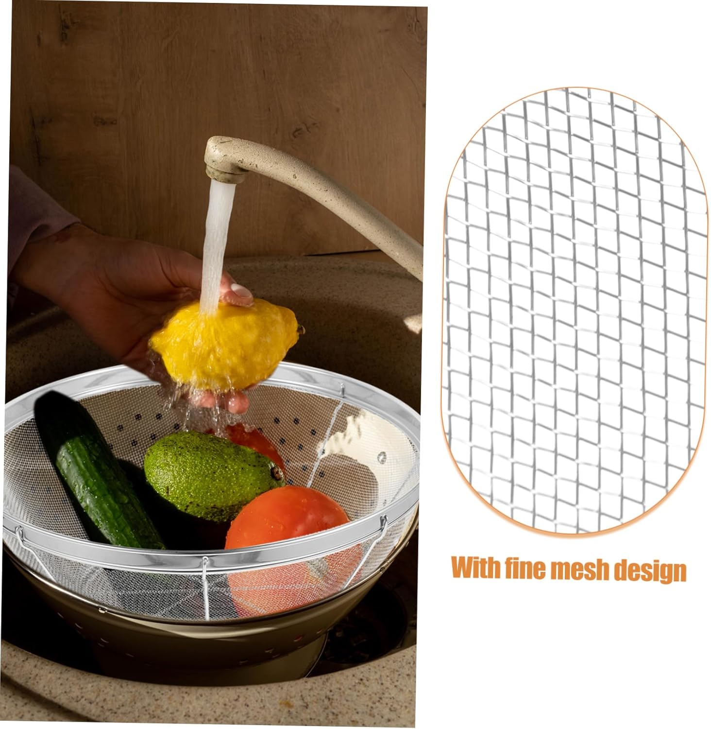 Package Include 1 x Colander Basket 18.5cm 1 x Colander Basket 21.5cm 1 x Colander Basket 24.5cm 1 x Colander Basket 27.5cm 1 x Colander Basket 30.7cm Characteristics -Size:21.80X21.80X8.50cm/8.57X8.57X3.34in stainless steel rice colander -Material:Stainless steel stainless steel multi-purpose kitchen colander -Size:18.70X18.70X8.00cm/7.35X7.35X3.14in fruit washing baskt -Color:Silver vegetables and fruits washing draining basket -Size:24.70X24.70X10.00cm/9.71X9.71X3.93in fruit vegetable washing basin -Size:27.50X27.50X11.00cm/10.81X10.81X4.32in fruit washing bowl -Size:30.70X30.70X12.00cm/12.07X12.07X4.72in fruit strainer - This mesh strainer is simple and to use, convenient for daily use, and convenient for storage when not in use kitchen drainage basket. - With this Drain Basket, it can filter out excess water from vegetables, very and convenient kitchen colander bowl. - Fine workmanship, not easy to deform, convenient for indoor kitchen and outdoor camping use colander for kitchen. - This multifunctional basket can also be used for storing a variety of household items, making it a versatile addition to any home kitchen vegetable drainer.Goods Informationstainless steel colander This draining basket is very .kitchen colander bowl This mesh strainer is made of stainless steel materials and is not easily broken, which .washing basket With fine mesh design, it can be used as a rice drainage basket.stainless steel drainage basket Its drainage design allows water to drain quickly from the surface