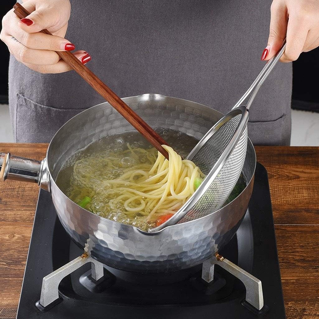 Product name: stainless steel colanderProduct material: high quality 304 stainless steelFeatures: Suitable for soup, dumplings, pasta, etc.Applicable places: restaurants, restaurants, kitchens, etc.prompt:1. Please check the size and color before purchasing.2. Except for the filter spoon shown in the product photo, no other items are included.3. Please note that different monitors may cause slight color differences, please understand.4. Due to manual measurement, there is a small amount of error, please refer to the actual product, thank you.5. If you find any problems with our products, please feel free to contact us via email and we will solve the problem as soon as possible.6. Your sharing and feedback are welcome so that we can provide you with better products and services.➤ Generally, the logistics is usually sent within 1-5 days, and the expected arrival time is within 10-20 days.It will be widely used in your kitchen, and it's an essential item in the process of cooking and frying food at home or in restaurants.