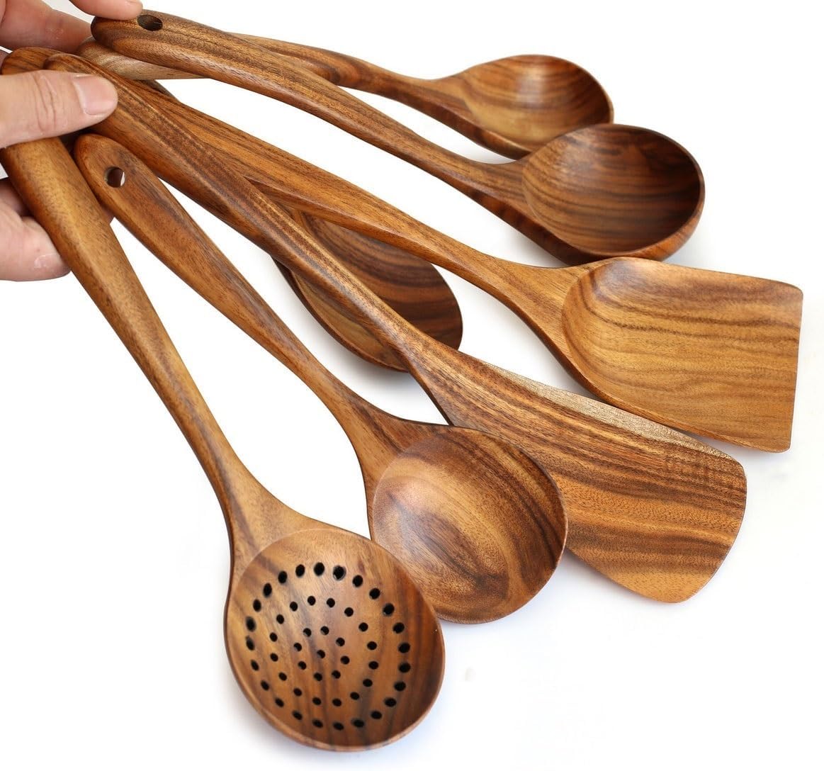 Product Name: Wood Spoons for Cooking Spatulas Cooking Utensils Cookware Dining Gadgets Sets 7 Pieces Kitchen Tools Exquisite Cooking Utensils, let your life have a style, and can be a gift from-friends and relatives. Material: Wood. Cooking Utensils Size: Spoons 18*8cm, 23.8*7cm, 26*6.3cm, 27*7.8cm. Slotted Spoons 28*8.2cm. Cooking Spatulas 33*7.5cm, 32*7.5cm. Package: Spoons * 4 Slotted Spoons * 1 Cooking Spatula * 2 If you have any questions about the product, please contact us.