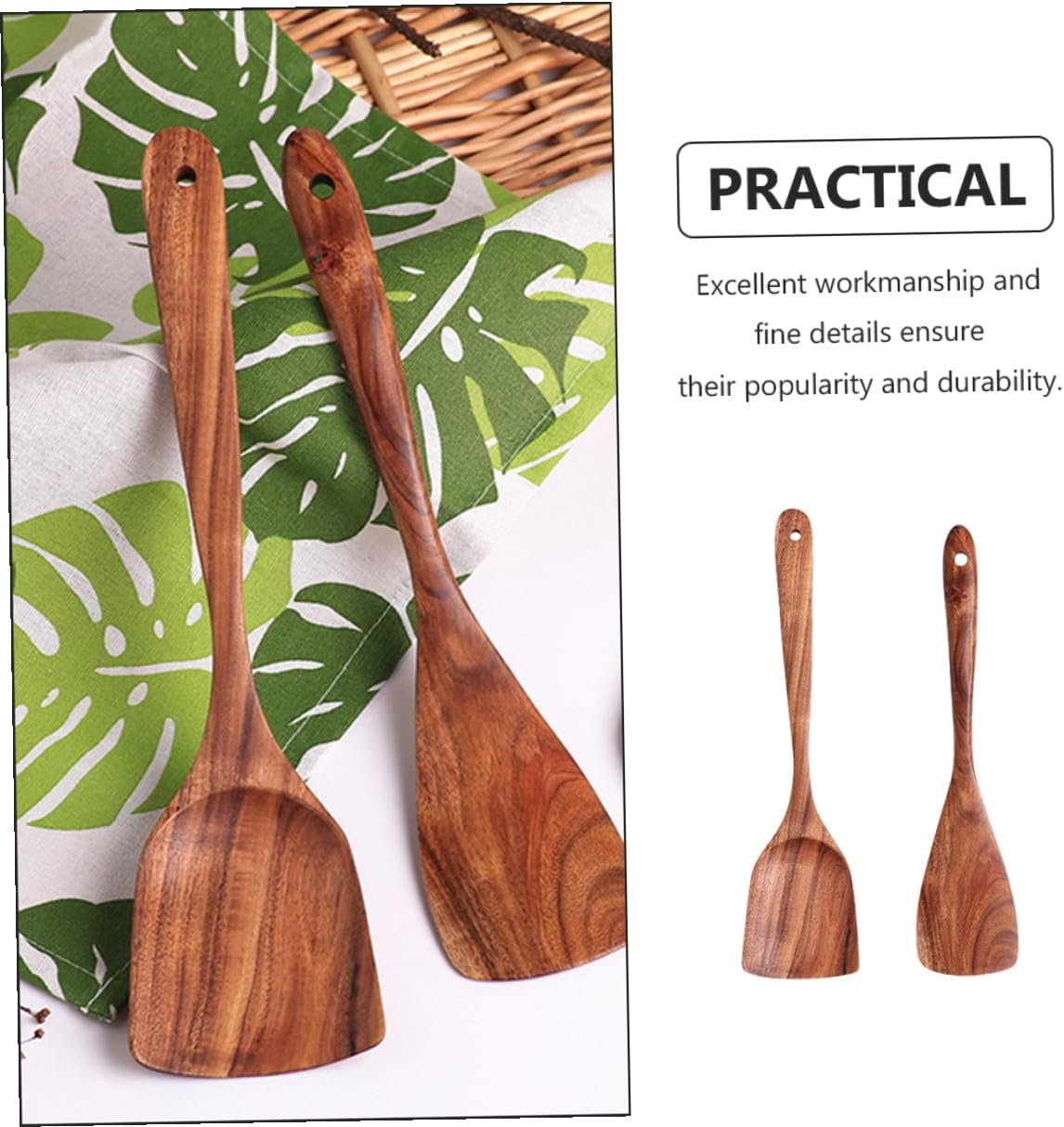Package Include 1 x spatula 1 spatula 1 x slotted spoon 1 x large soup spoon Characteristics -Size: About 33.00X7.50X1.00cm/12.97X2.95X0.39inch. (Pot Spatula) Household Utensil -Size: About 8.2x28cm/3.22x11.02inch (Slotted Spoon) Heat-resistant Spoons -Size: About 7.8x27cm/3.07x10.63inch (Large Soup Spoon) Wooden Kitchenware -Material: Wood wood utensil. -Color: Assorted Color Wooden Cooking Utensils. -Product Info:Wooden kitchenware set -Size: About 7.5x32cm/ 2.95x12.6inch (Flat Spatula) Cooking Tools -Thick handle, natural and clean, which are comfortable to hold and use Non-stick Spatulas. -Natural wood manufacturing, heat insulation and cold insulation, protect your hands Wood Cooking Tools. -Lightweight and , not easy to conduct heat, won't hurt your skin Non-stick Spoons. -They are made of premium wood material, practical and have a Household Wood Spatulas. -Good material and , you can buy this set of cooking tools at a Spatulas.Goods InformationNon-stick Spatulas If you need a complete functional set of kitchen tools, why not take at our new products? This spatula set is made of wood material, light weight, easy to use, not easy to deform or damage.Non-stick Spoons Natural wood is one of the most safe material, completely to your family, makes a good helper to prepare delicious food for your family