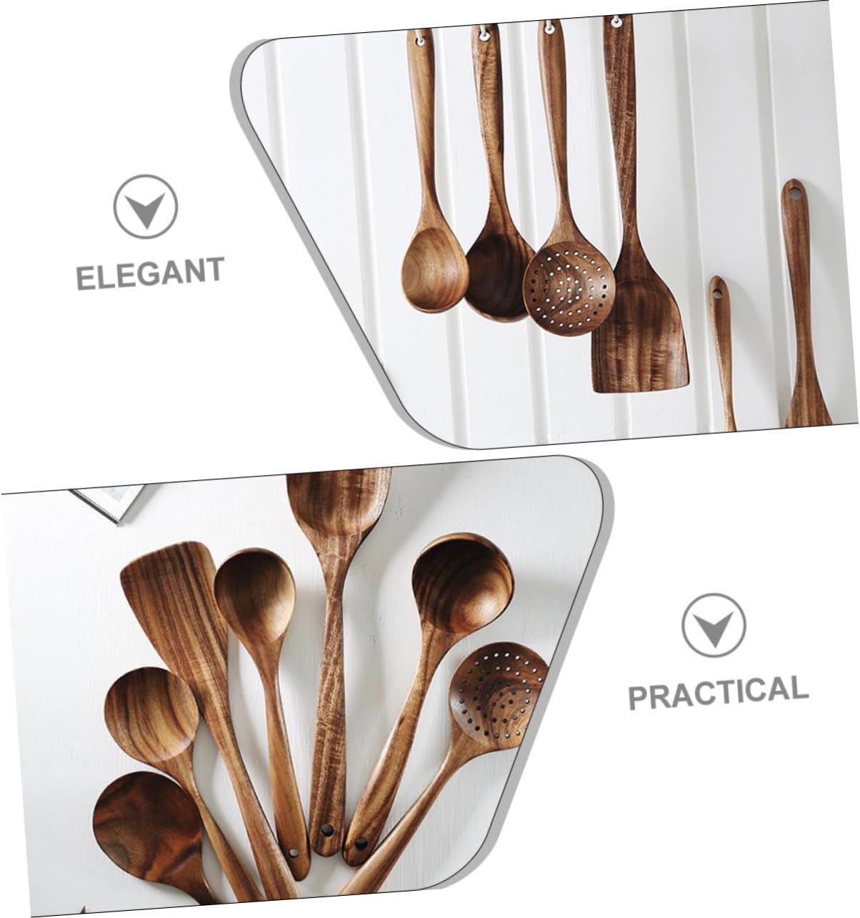 Package Include 1 x cooking spatula 1 x frying spatula 1 x colander spoon 1 x large soup spoon 1 x small soup spoon 1 x mixing spoon 1 x rice spoon Features -Color:Assorted Color multifunction spoon - Size: 28.00X8.50X2.00cm/11.00X3.34X0.79in(mixing spoon) wood utensils for nonstick cookware - Size: 33.50X8.50X1.00cm/13.17X3.34X0.39in(cooking spatula) wood scoops - Size: 25.50X6.50X2.00cm/10.02X2.55X0.79in(large soup spoon) utensils for nonstick cookware - Size: 23.50X7.00X1.00cm/9.24X2.75X0.39in(colander spoon) wood utensils -Product Info:Wooden spatula set - Size: 18.00X7.50X1.00cm/7.07X2.95X0.39in(frying spatula) multifunction kitchen spoon - Size: 31.50X7.50X1.00cm/12.38X2.95X0.39in(rice spoon) wood coffee scoop - Size: 26.00X7.00X2.00cm/10.22X2.75X0.79in(small soup spoon) multifunctional kitchen spoon -Material:Wood sugar spoon -The smooth and ergonomic design of these utensils a comfortable grip, allowing you to cook with precision and ease Short Handle Tea Spoons. -These spoons are very suitable for use in homes, coffee shops, tea houses, restaurants and other places wood utensils for cooking. -With a hanging hole at the end of every spoon, this set of cooking spoon can be easily the wall Household Tea Scoops.Goods Informationwood pasta spoon Fine workmanship, smooth edges, easy to use, it can be used safely with confidence.wood coffee to use.household salt spoons The smoothly polished edges will not harm your skin.multifunction spoon The spoon is very suitable for bath salt, flour, rice, candy, applications.wood spoon They are your good helpers in the kitchen.multifunctional kitchen spoon This wooden spoon