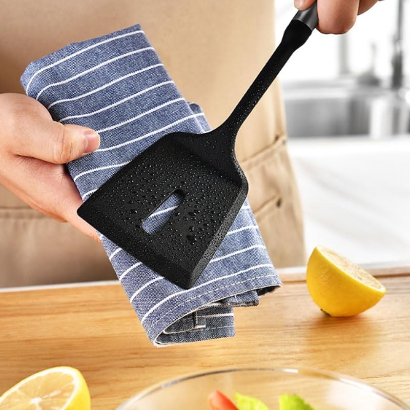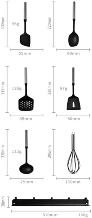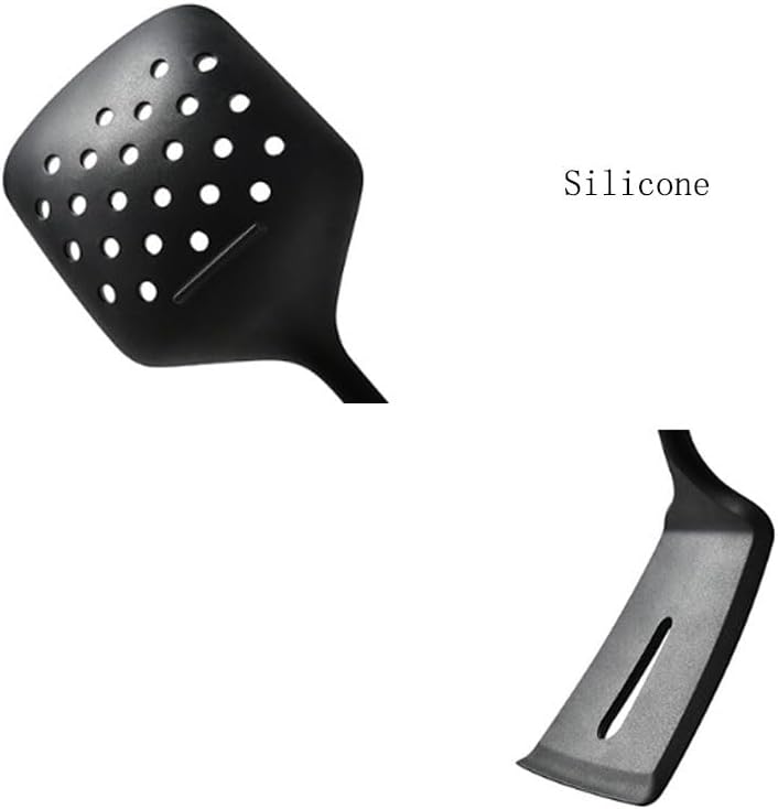 `Product Name: Spoon and Spatula SetMaterial: Silicone Size: As shownColor: As shownFunctions: Cooking, baking.The set includes: Large soup spoon Small soup spoon Large strainer Stir-frying spatulaShoulder bag: Shovel and spoon set * 1 set (excluding display items)Attention:1. Please allow 1-2cm error due to manual measurement. Thank you.2. The actual color of the product may be slightly different from the image shown. Please refer to the actual product.