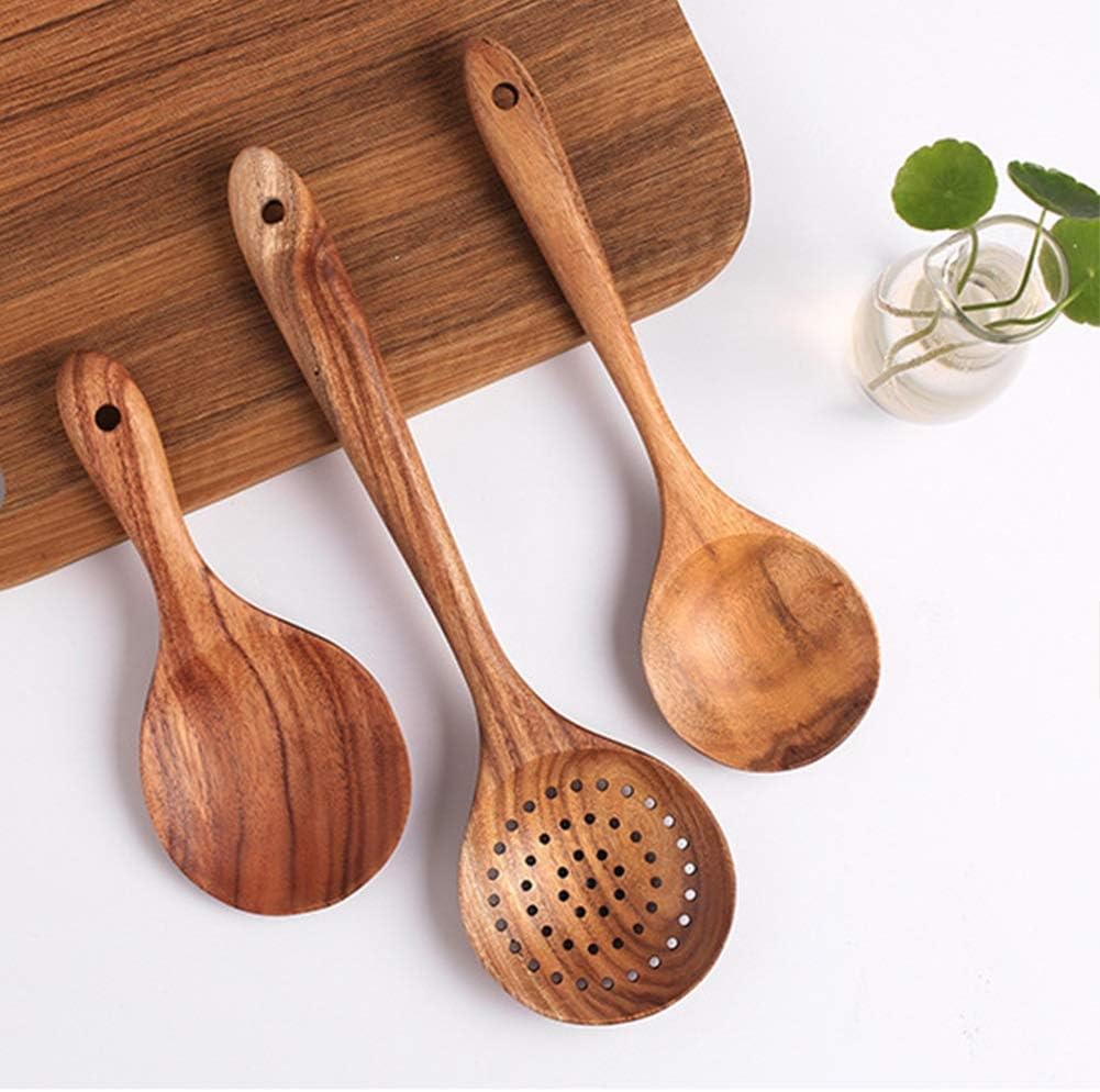 1. Natural logs are natural and moist, the surface is delicate and smooth, and different parts have different textures and vary.2. The acacia material is not easy to deform, seldom cracks, strong and heat-resistant, corrosion-resistant, insect-proof, long-term use.3. The design of the small hole on the handle is convenient for hanging, and it can keep the wooden spoon dry and not easy to.4. The edges are smooth, comfortable to feel, no burrs, it can be used with confidence.Specification:Material: woodColor: Picture color (as shown)Size: spatula 33*7.5cm, flat spatula 32*7.5cm, colander 28*8.2cm, big spoon 27*7.8cm, soup spoon 26*6.3cm, stirring long spoon 23.8*7cm, rice spoon 18*8cmProcess: whole wood production, hand-polishedApplicable places: restaurants, personal household.Note: There are subtle differences in each hand-made wood product.*1. Package content:Kitchenware * 1*2. Package content:Spatula * 1Flat shovel * 1Colander * 1Soup spoon * 1Rice spoon * 1Tablespoon * 1Stirring spoon * 1Note:1. All pictures are professionally color-coded, but due to different ambient light and display device , there may be some deviation between the picture you see and the item itself. Please understand that.2. The data is measured manually, there may be some deviations, but it does not affect the use.Safe to use on hot surface and safe for various cooking surfaces.