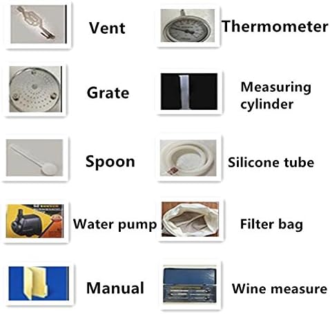 Dimensions of the Boiler Volume: 2 Gallon : 10 L Litres : 25cm in diameter x 25cm in height ; 5 Gallon : 20 L Litres : 30cm in diameter x 30cm in height ;Package Lists : 1.Water pump; (Used for circulating cooling water) 2.Measuring cylinder;(Used to measure capacity) 3.Silicone tube;(Used for wine outlet and cooling water) 4.Filter bag;(Used to install materials to prevent pudding) 5.Thermometer;(Used to measure temperature during fermentation) 6.Grate; (To prevent pudding) 7.Vent;(Used to ferment gas during fermentation) 8.Spoon;(5g) 9.Manual;(Technical support) 10.Wine measure tool;(Measure the degree of alcohol)Features: 1 YEAR guarantee, free exchange of accessories . Made of high quality stainless steel, rust resistant, durable and easy to clean. Compatible with small household oil production equipment, convenient to use. Helps the oil manufacturing process faster at low temperature and better taste. Reliable and reliable performance without side effects. Great for domestic petroleum water production.