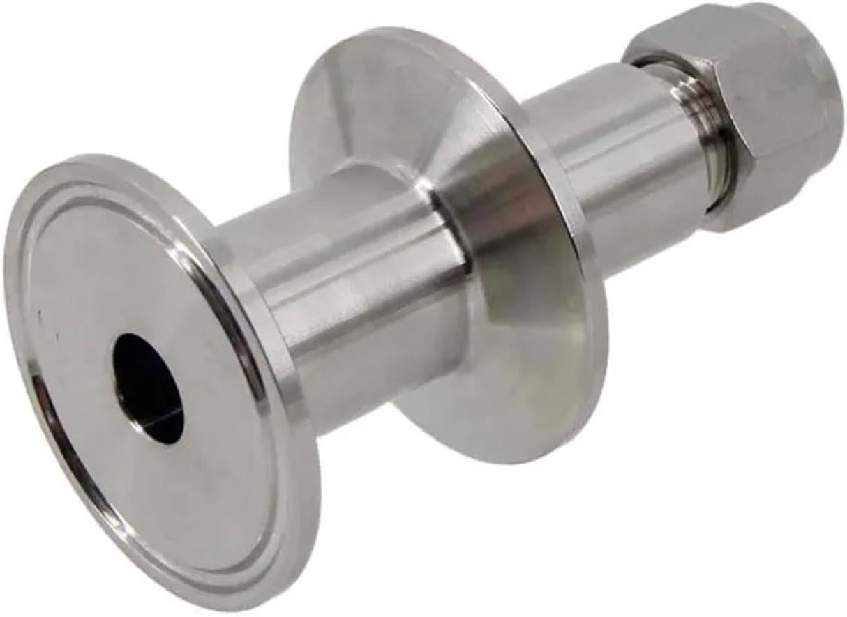1.5" Tri Clamp x 1/2" Compression AdapterThis unique adapter has two 1.5"tri clamp and a 1/2" compression on the other end. It allow you attach any other 1/2"OD products in it, such as 1/2"OD herms coil.Bar Accessories Type : Homebrew Clover FittingMaterial : Stainless SteelType : Bar Accessories**Purchase Notes***Because it is manual measurement, please allow 1-3% error and make sure not to mind ordering.*Product photos are taken in kind, because the light is different from the display, so the color may be different. The product will be subject to the actual product received.