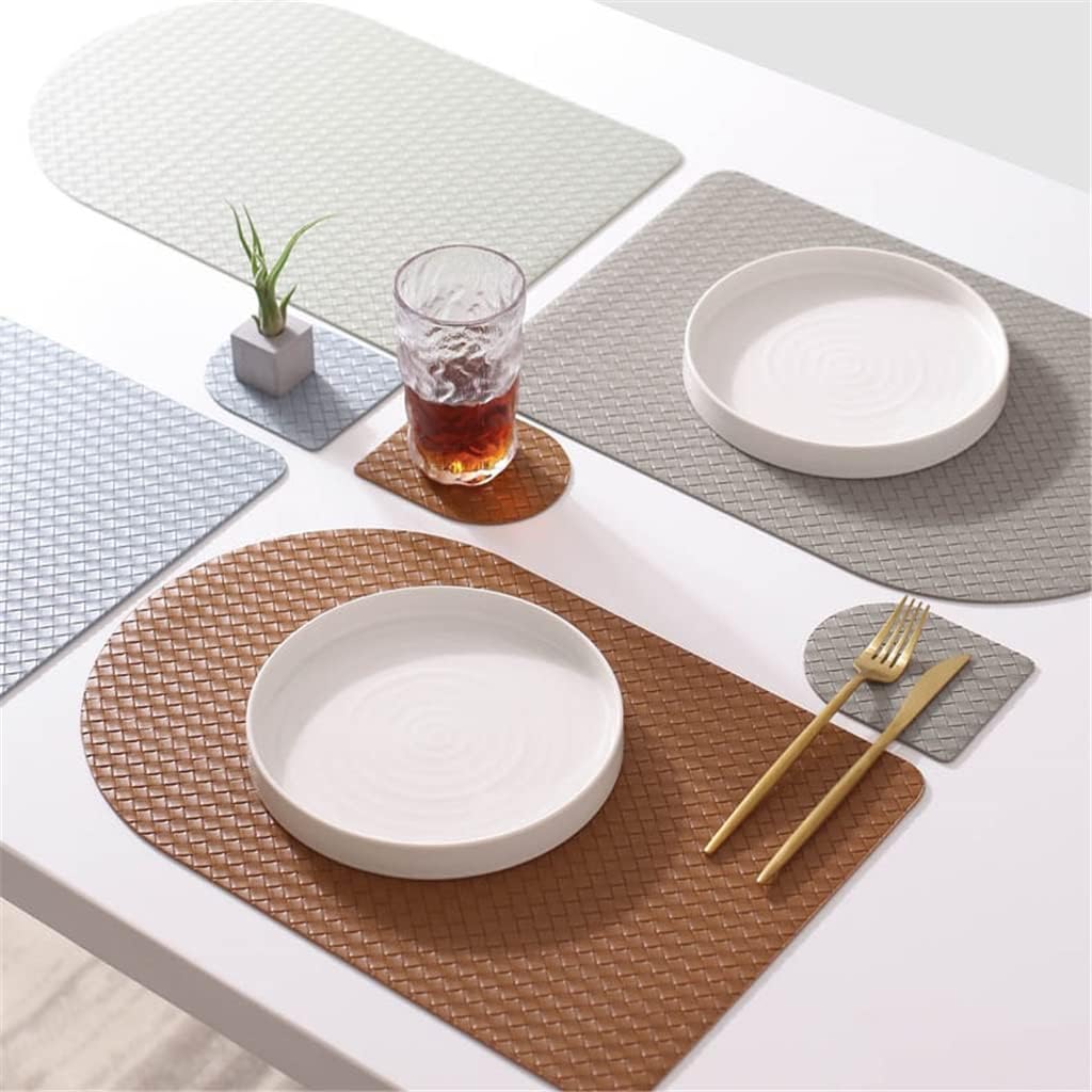 Application places: Western restaurant, Coffee shop, Star hotel, Home dining table. The uneven weave texture is easy to manage. Can be washed and rinsed. Create a different style. It also plays the role of decorating the tabletop, making the meal more interesting. Description: Feel comfortable, Simplely style, Suitable for a variety of styles of home. Product: Placemat, Table Mat Material: Leather (artificial leather) Size: Placemat 45*30cm, thickness 1.7mm; Coaster 10*12cm 1 set of 2 pieces, including 1 placemat and 1 coaster. Package Included: 4 set *Table Place Mats (Does not include other tableware.) Note: 1. Manual measurement 1-4cm error is allowable. 2. Different monitor shows different colors, so the color may be a little different from the real color. 3. Due to the long distance shipping, the product will be a little foldable, looks not so flat as picture shows, but does not affect to use.
