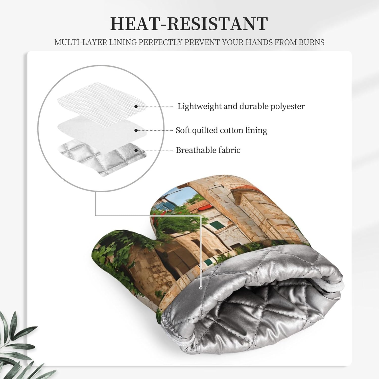 Upgrade your kitchen essentials with this oven mitts and pot holders set, designed for safe and comfortable handling of hot cookware. The set includes 2 heat-resistant oven mitts and 2 pot holders with pockets, making it a practical choice for daily cooking, baking, grilling, and microwave use.Crafted from high-quality polyester with thick insulated padding, these kitchen gloves deliver reliable heat protection up to 260°C. The soft quilted lining ensures comfort and flexibility, while the silicone palm design enhances grip and control when handling hot pots, pans, and trays.The non-slip silicone surface provides added stability, giving you confidence when moving hot cookware. Waterproof inner and outer layers make cleaning simple—just wipe clean or hand wash and air dry for easy care.Each piece features a convenient hanging loop for organized storage and quick access in your kitchen. Stylish and functional, this oven mitts set also makes a thoughtful gift for family and friends on holidays, housewarmings, and special occasions.