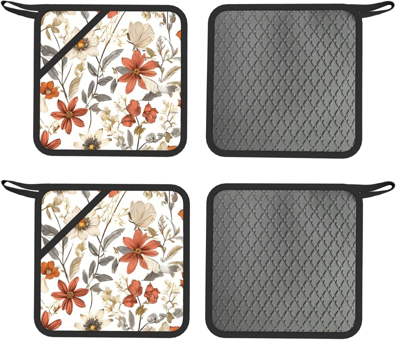 Upgrade your kitchen essentials with this oven mitts and pot holders set, designed for safe and comfortable handling of hot cookware. The set includes 2 heat-resistant oven mitts and 2 pot holders with pockets, making it a practical choice for daily cooking, baking, grilling, and microwave use.Crafted from high-quality polyester with thick insulated padding, these kitchen gloves deliver reliable heat protection up to 260°C. The soft quilted lining ensures comfort and flexibility, while the silicone palm design enhances grip and control when handling hot pots, pans, and trays.The non-slip silicone surface provides added stability, giving you confidence when moving hot cookware. Waterproof inner and outer layers make cleaning simple—just wipe clean or hand wash and air dry for easy care.Each piece features a convenient hanging loop for organized storage and quick access in your kitchen. Stylish and functional, this oven mitts set also makes a thoughtful gift for family and friends on holidays, housewarmings, and special occasions.