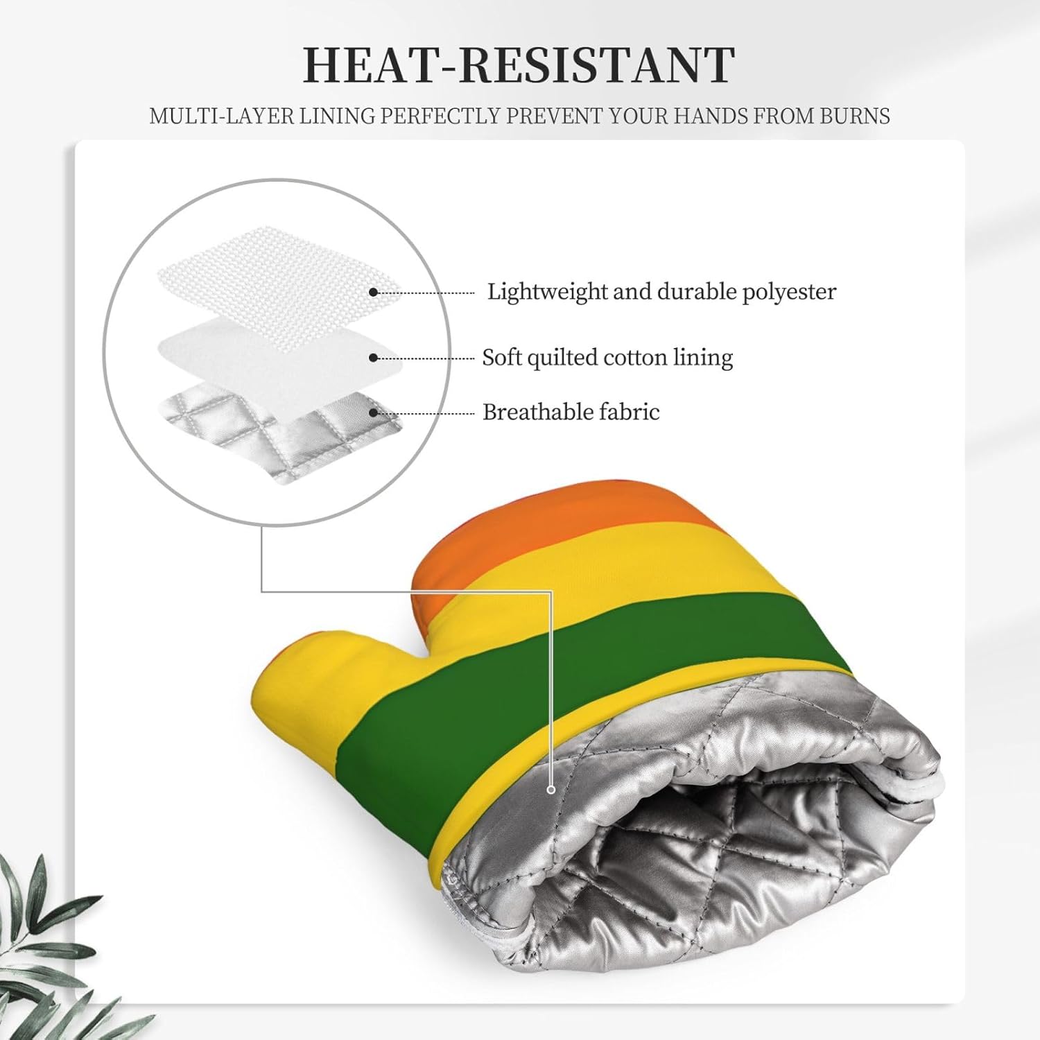 Upgrade your kitchen essentials with this oven mitts and pot holders set, designed for safe and comfortable handling of hot cookware. The set includes 2 heat-resistant oven mitts and 2 pot holders with pockets, making it a practical choice for daily cooking, baking, grilling, and microwave use.Crafted from high-quality polyester with thick insulated padding, these kitchen gloves deliver reliable heat protection up to 260°C. The soft quilted lining ensures comfort and flexibility, while the silicone palm design enhances grip and control when handling hot pots, pans, and trays.The non-slip silicone surface provides added stability, giving you confidence when moving hot cookware. Waterproof inner and outer layers make cleaning simple—just wipe clean or hand wash and air dry for easy care.Each piece features a convenient hanging loop for organized storage and quick access in your kitchen. Stylish and functional, this oven mitts set also makes a thoughtful gift for family and friends on holidays, housewarmings, and special occasions.