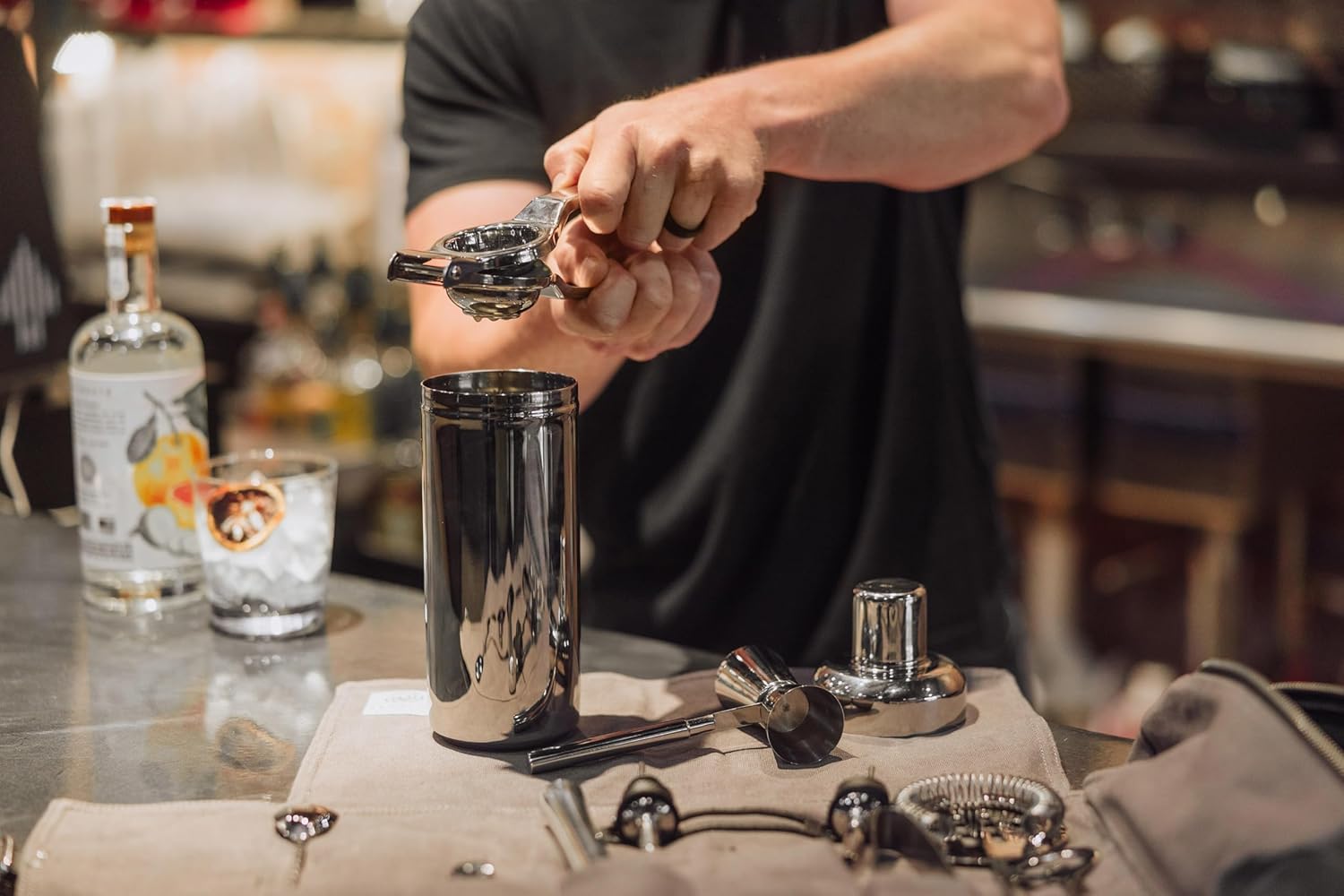 | Included Components | 1 Beer Bottle Opener, 1 Canvas Roll-Up, 1 Juice Squeezer, 1 Muddler, 1 Strainer, 1 Wine Key, 1 Dual Jigger, 2 Pour Spouts, 1 Shaker w/ Strainer, 1 Bar Spoon, 1 Ice Tongs |