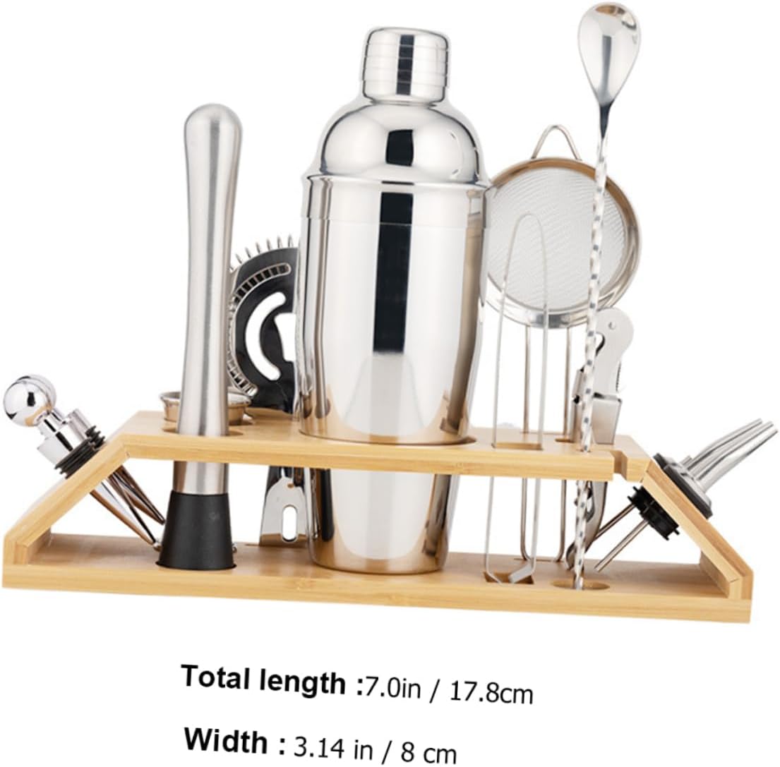 Package Include 1 x Set of 13Pcs Cocktail Shaker Tools Features - Material: Stainless steel, Cocktail Making Tools. - Shaker Strainer Size: Approx 1780X800X200cm/700X314X079in Pub Tools. - Color: Silver Beverage Making Tools. - Fully equipped, makes you smooth and comfortable when you mixed Stainless Steel Barware Set. - Stainless steel bartender tool set, portable and professional Cocktail Tools. - Can be used for beverage, milk tea, coffee, drinks, cocktail, etc Household Cocktail Tools. - It can be used in many occasions such as home, bar and so on Stainless Steel Bar Tools. - 550ml large capacity shaker and is suitable for many people Bar Tools Set.Goods DescriptionStainless Steel Cocktail Tools for home or professional use, create masterpieces at home.Stainless Steel Bar Tools A great addition to bar tools, it's the shaker for entertaining and complements other bar accessories nicely.Home Cocktail Tools If you would like to impress your friend by making drink, you need these drink shaker and other tools